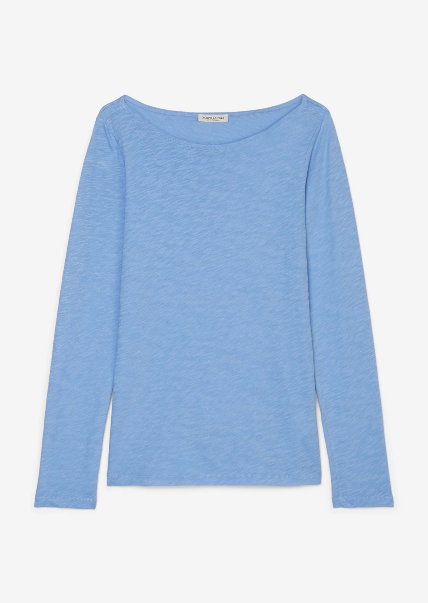 Long-sleeved top made of loose, soft slub jersey fabric composed of pure organic cotton. Perfect for layering, wearing underneath or on its own. This regular-fit piece comes with a bateau neckline, narrow sleeves and a straight hem edge.
