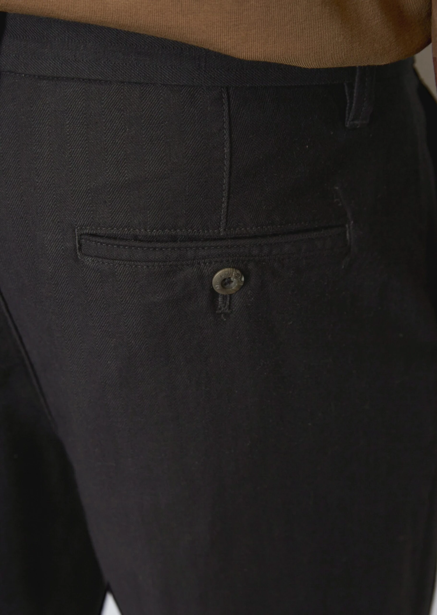 These incredibly modern BELSBO relaxed cropped chinos come in a relaxed fit with a tapered, cropped leg and a cool herringbone design. Made of a blend of organic cotton and linen, they are incredibly comfy. Elaborate waistband design with a reinforcement on the inside and a front fly with a hook fastener. There are slash pockets on the sides and buttoned piped pockets on the back. The garment-washed finish creates a wonderfully soft texture and gives this piece a casual look.