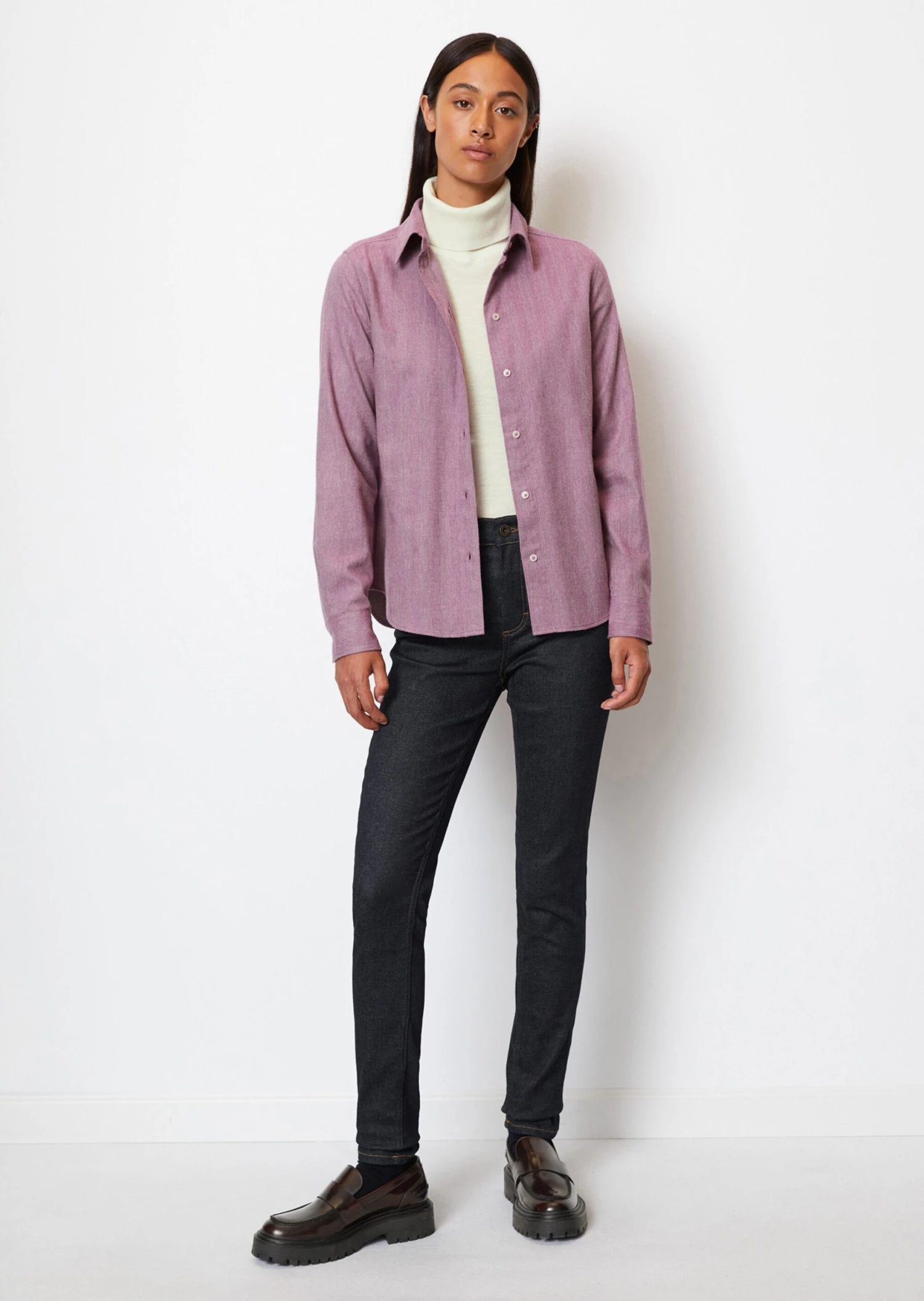 The simply designed blouse is a real all-rounder and trend piece at the same time. We wear it both in the office and in everyday life and it has achieved a true cult status in styling. It effortlessly manages the balancing act between elegance and sporty-casual style, while presenting itself as classy and grown-up. The feminine shaped-fit model has a classic cut with Kent collar, a full-length button placket, classic blouse sleeves and a casually rounded hem. The quality of the fabric is a high-quality, pure twill made of organic cotton in a melange look.