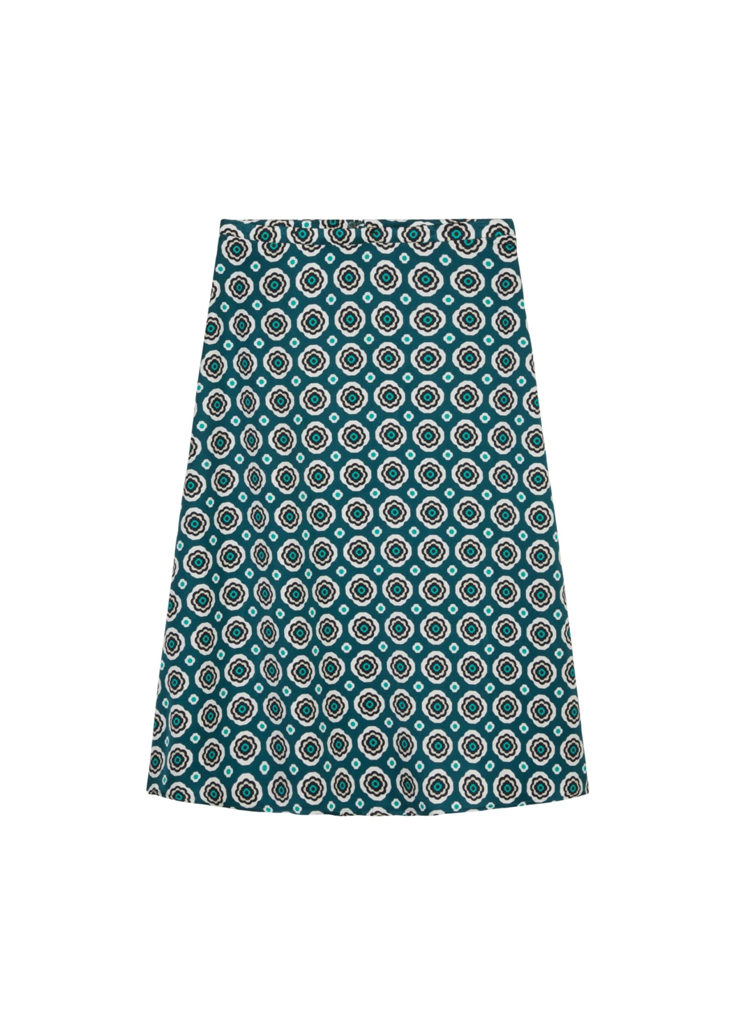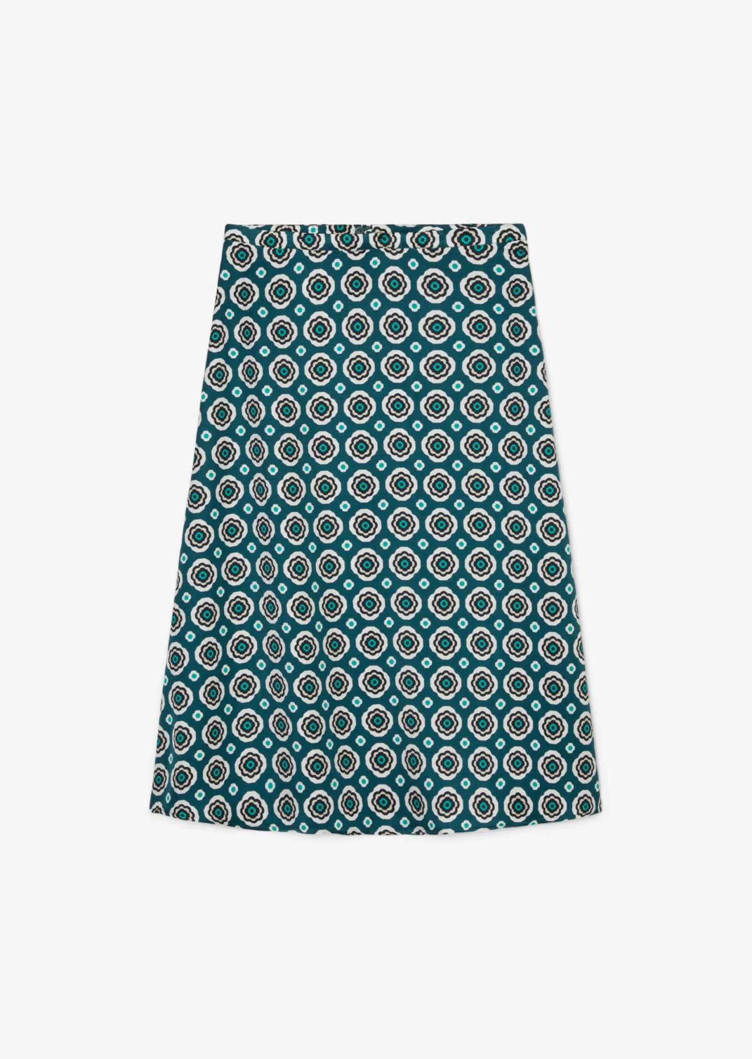 Hardly any fashion piece offers as much variety in styling as the flared midi skirt. Whether casual, classy or totally fashionable, whether simple or elegant or mega flashy. The skirt is the perfect foundation and enhances any outfit. The model is made of woven, flowing viscose twill with an enchanting all-over print. Flared loose fit with a slim waistband finish and seamless zipper at center back. The skirt is not lined. Styling tip for the trendy complete look: combine with the matching blouse.