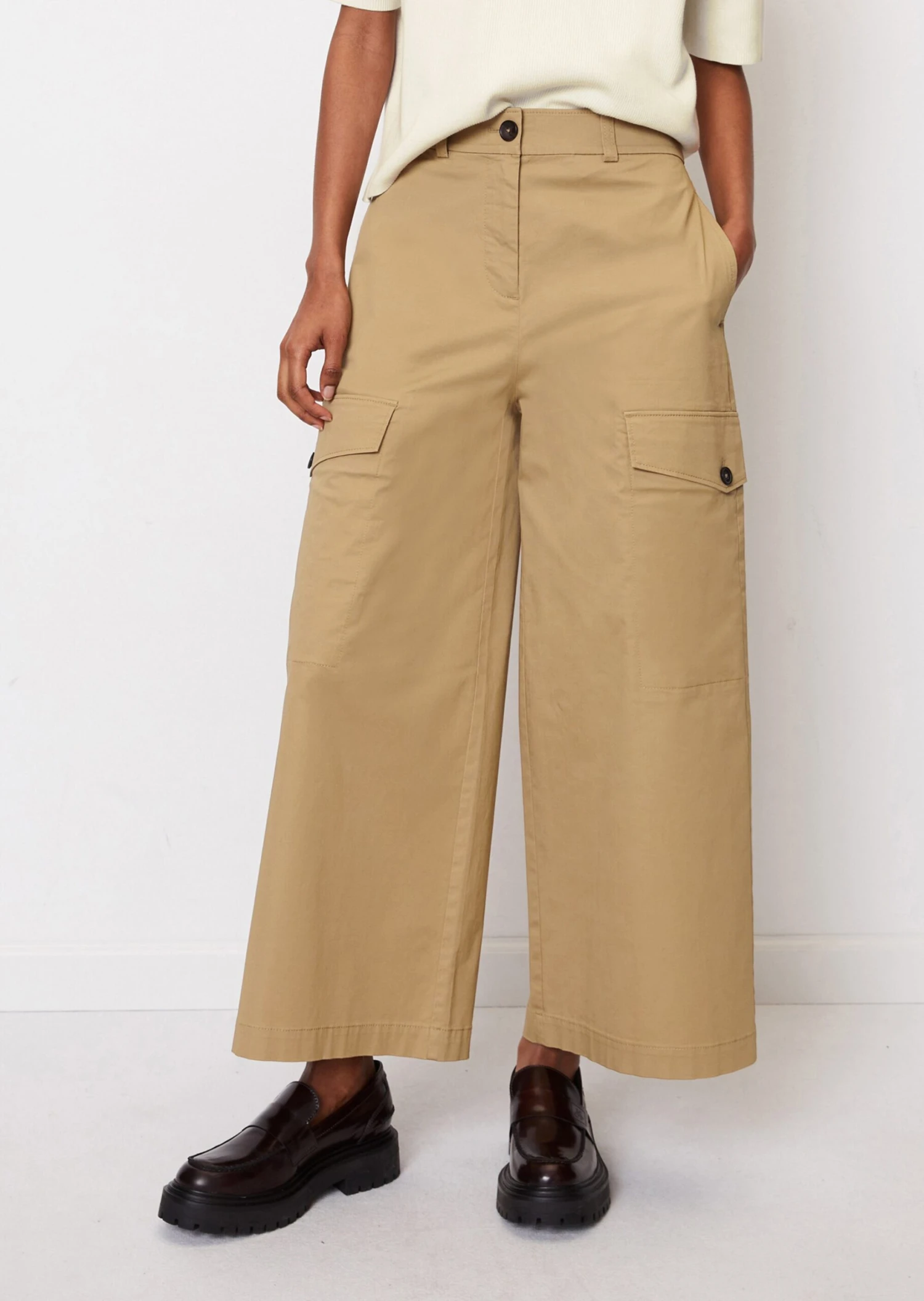 Marc O’Polo Cargo Culottes In A Relaxed Fit Made Of Organic Cotton Stretch Twill Satin