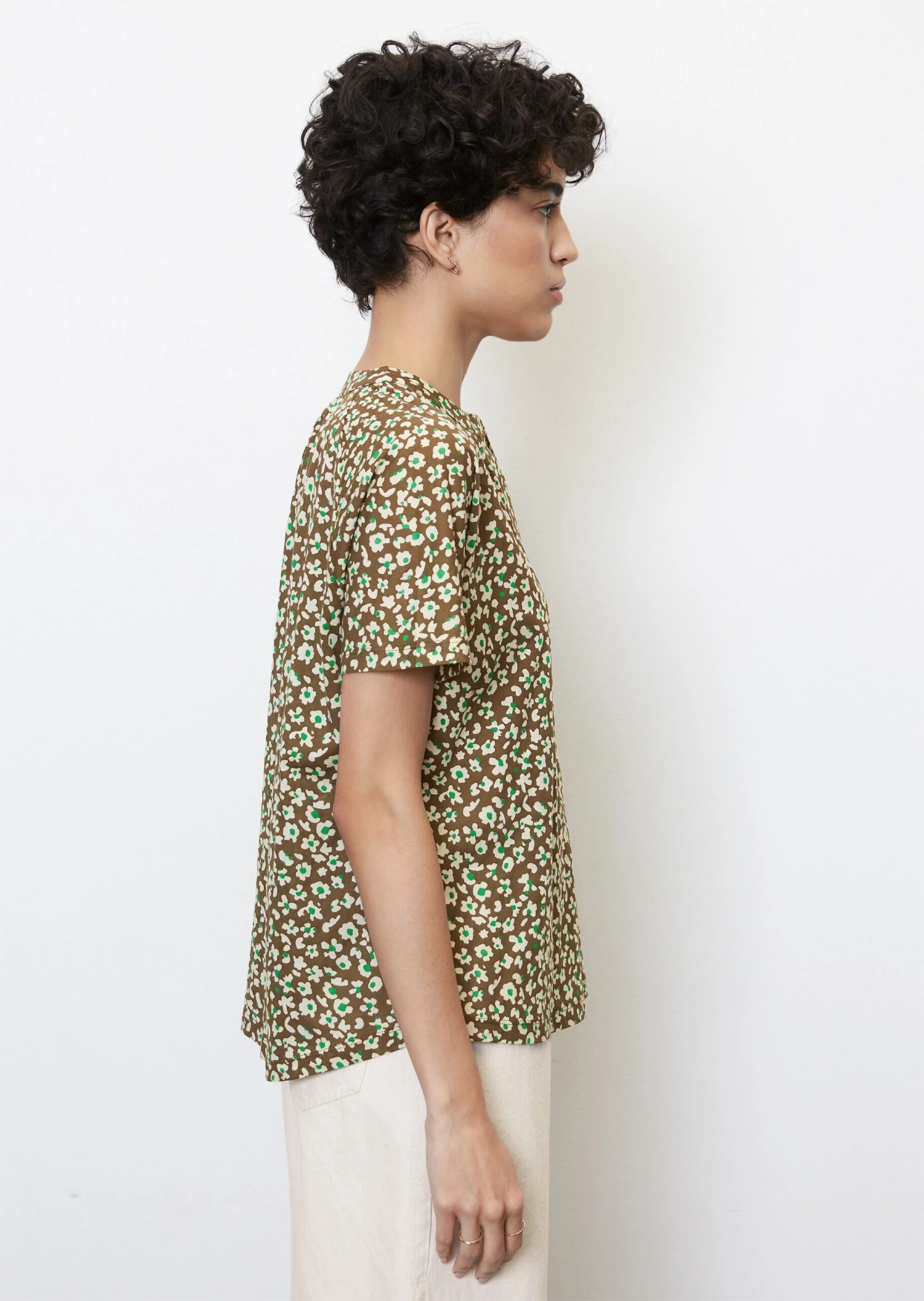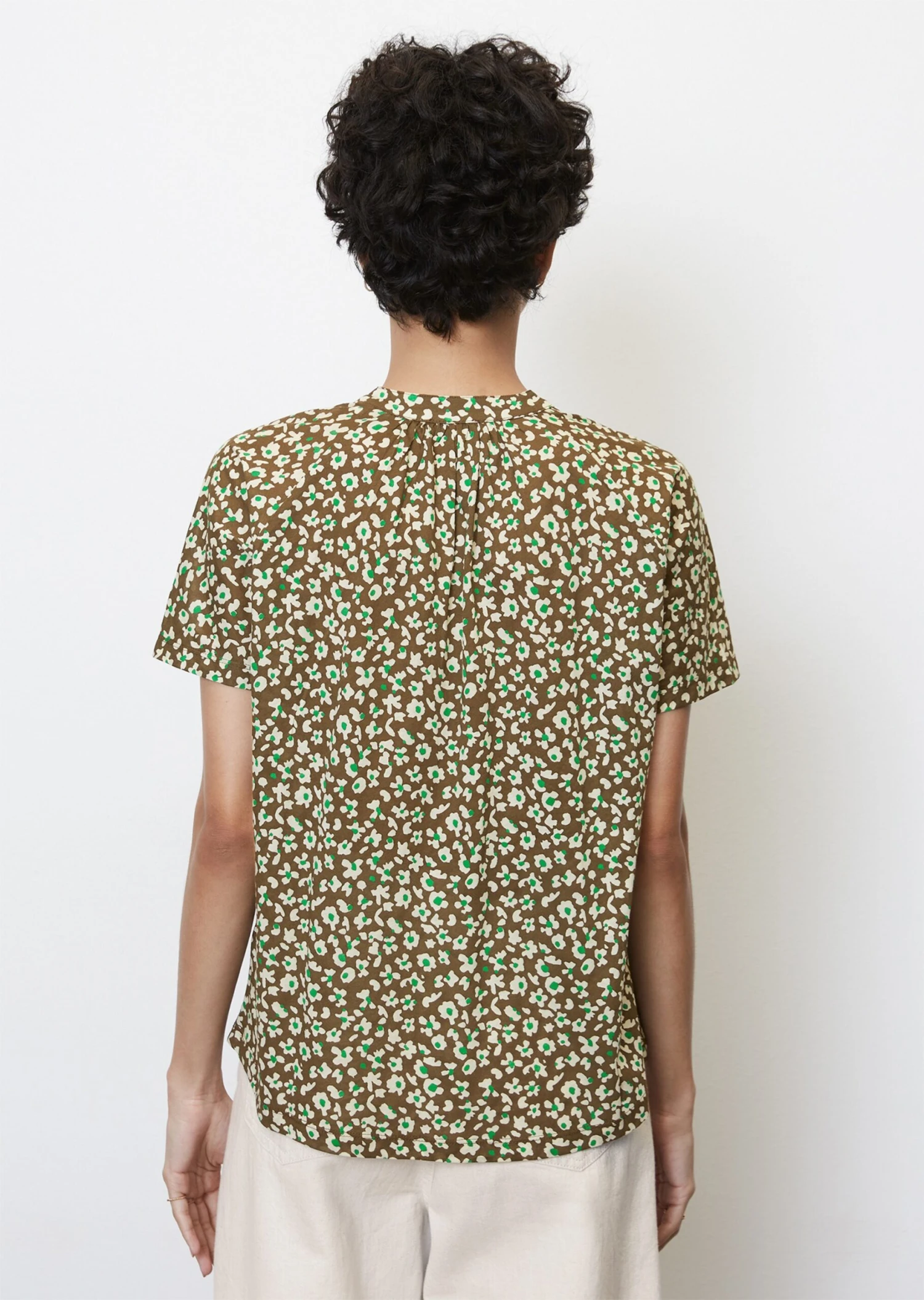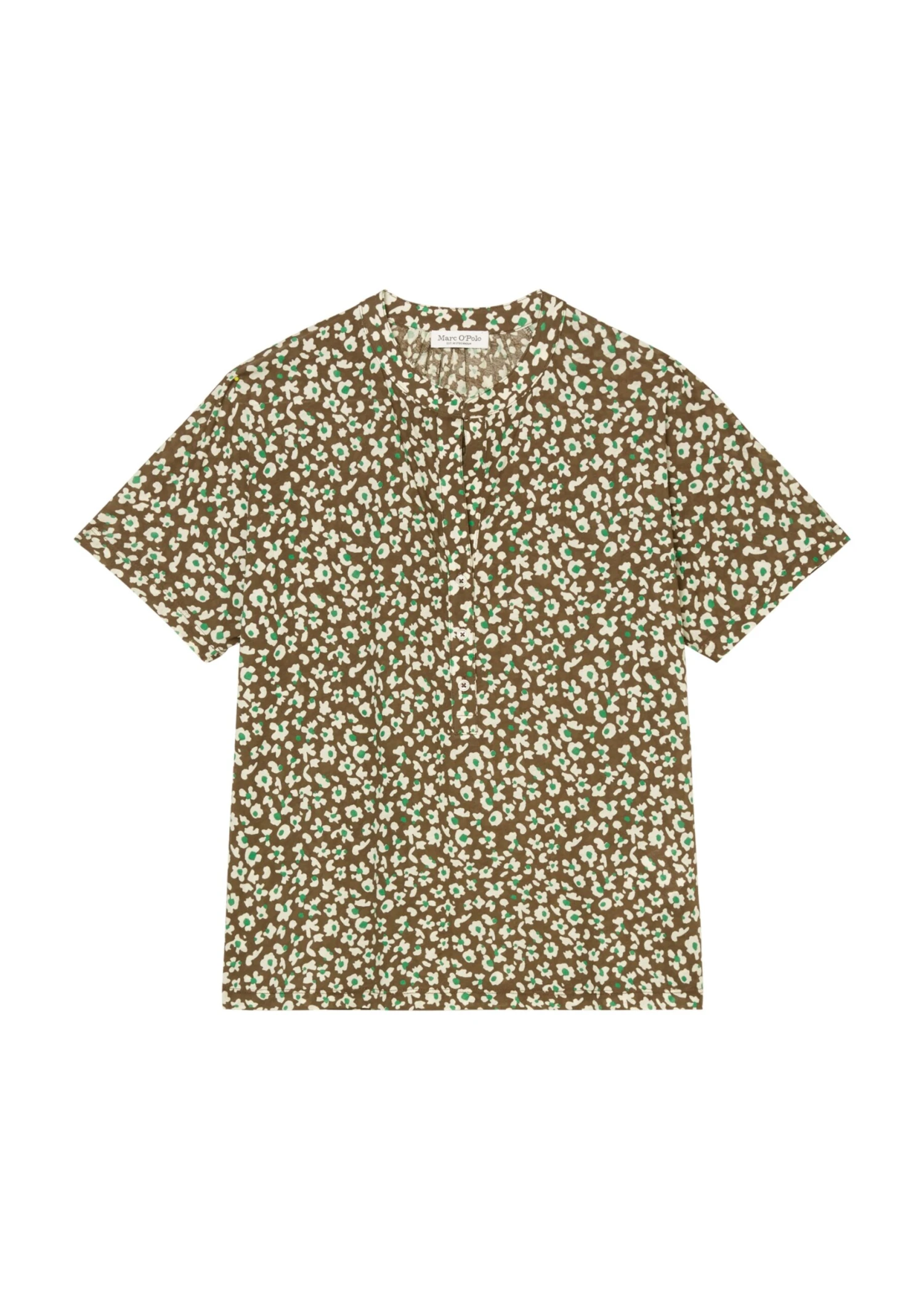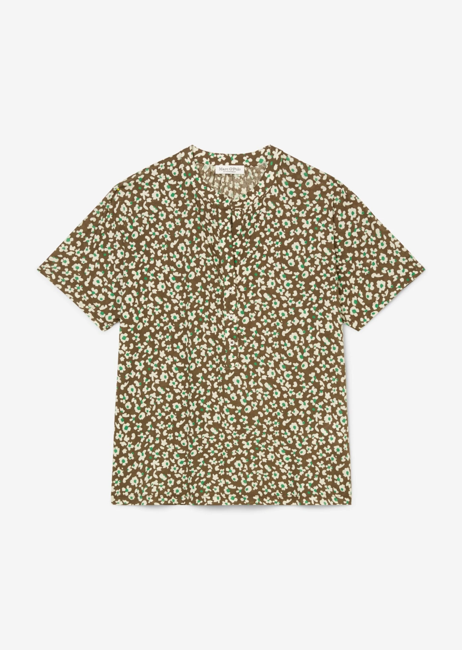 Hot off the press! Loose fit jersey blouse with all-over print. Made of ultra-lightweight and very soft organic cotton jersey fabric with a notch neckline detail, a band collar, cut-on raglan sleeves and a slightly rounded hemline. Eye-catcher: the gathered collar section on the back.