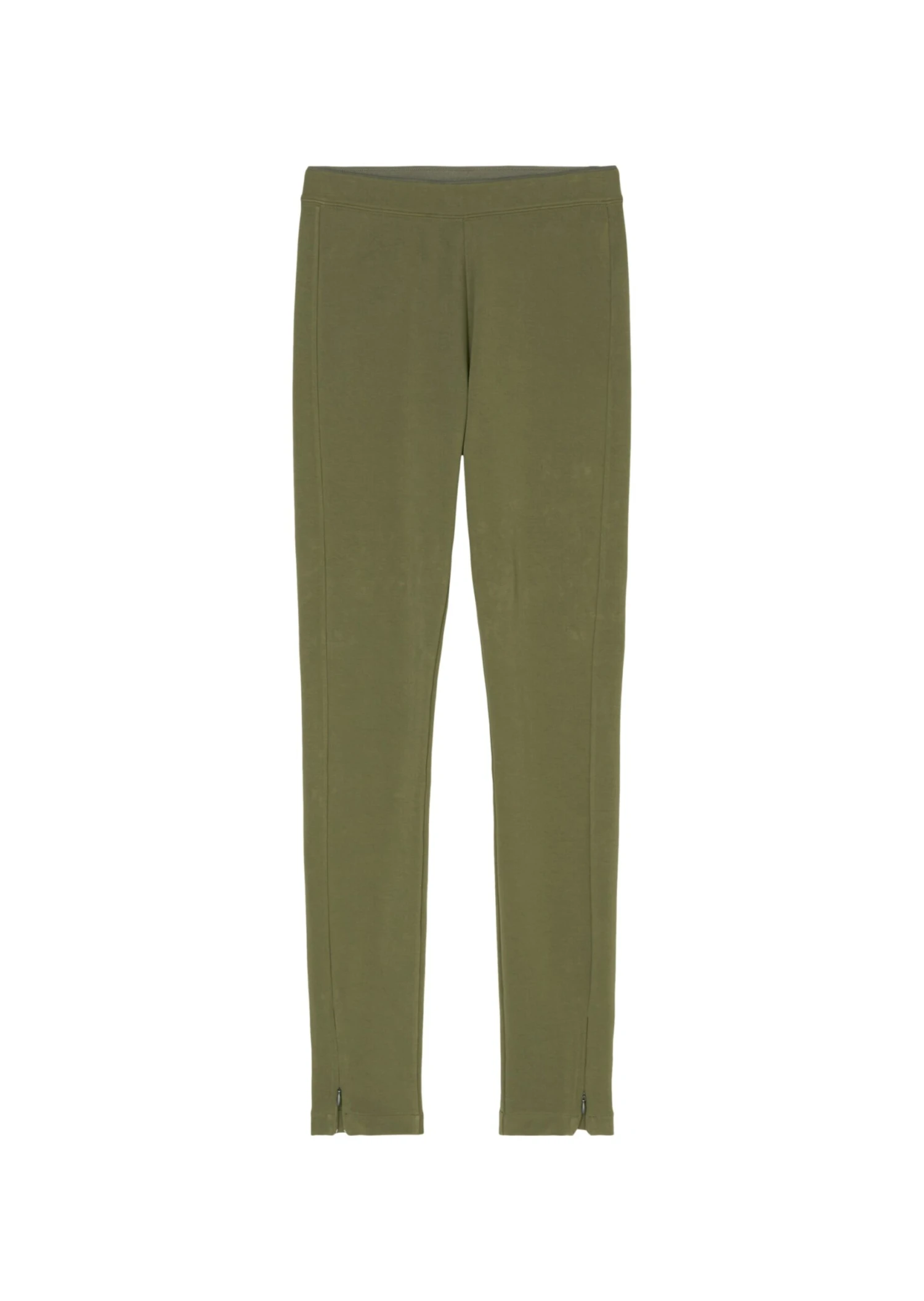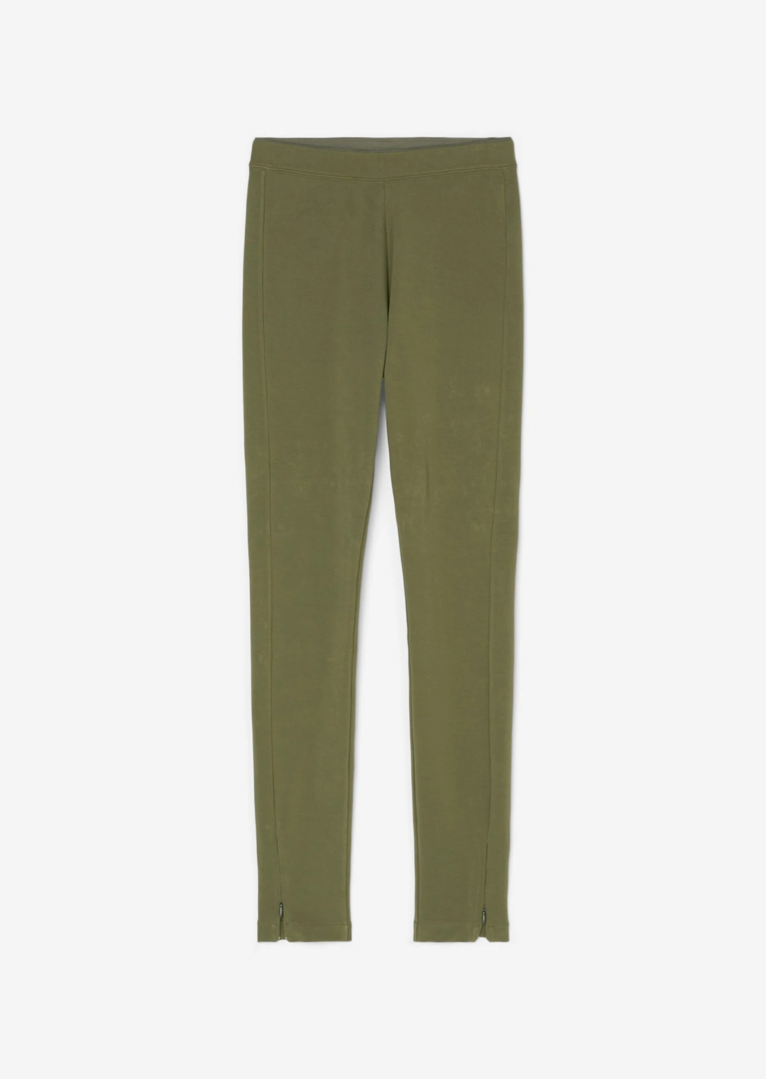 Leggings are the new skinny jeans. This slim-fitting pair is made from a high-quality organic cotton blend in compact stretch interlock jersey fabric. These trousers will go with anything – from a hoodie or chunky knit jumper to a formal business blouse or breezy blouse top. With a wide, high-quality elasticated waistband, side seams that are offset to the front with zips at the hem and casual twin-needle stitching.