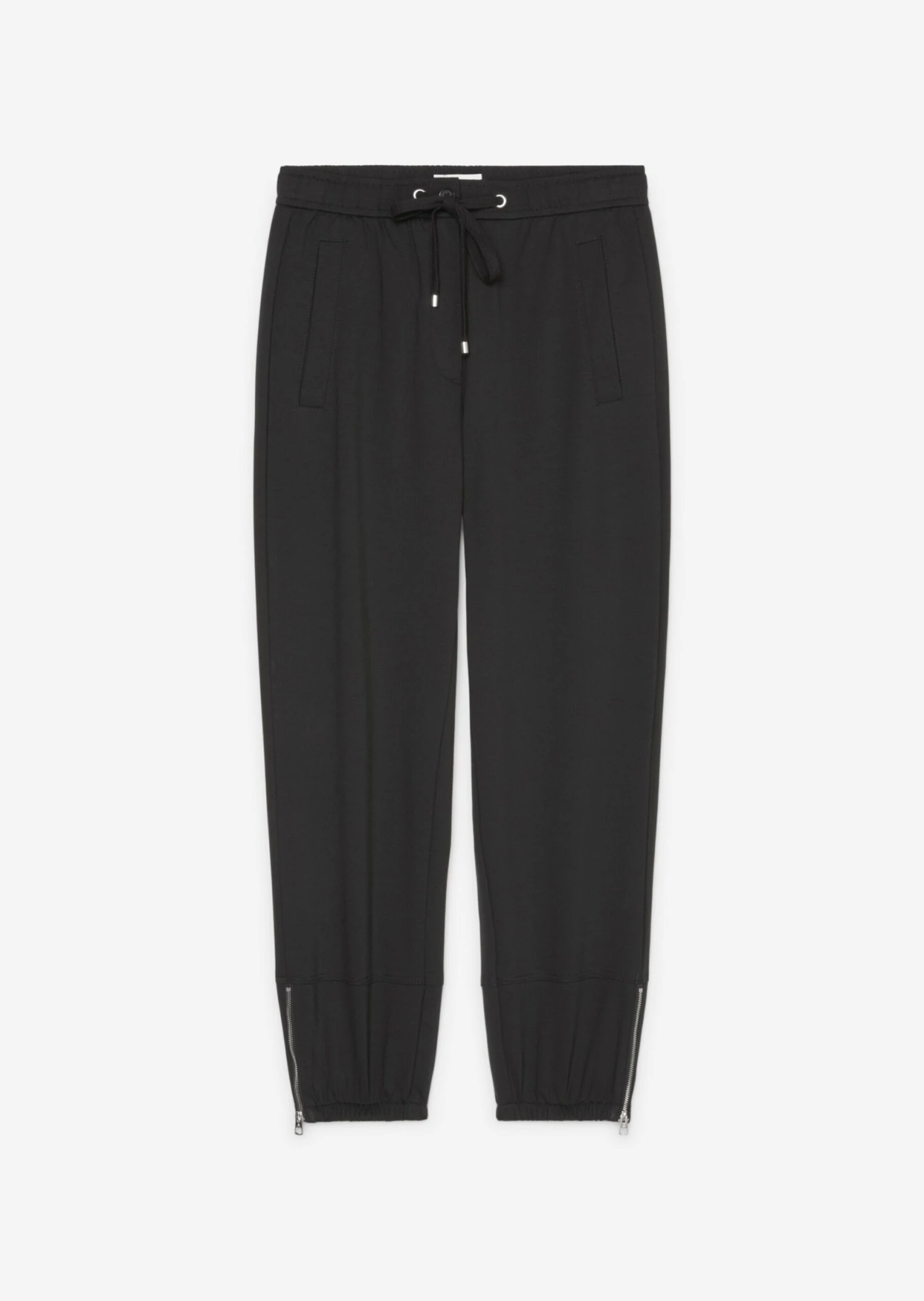 Joggpants update: the casual trousers on fine, compact interlock jersey fabric come with new, classy sporty details and an elegant fit. Model with elastic waistband with drawstring and tie, button and zip fastening, two welt welt pockets and a piped back pocket. The leg end: can be zipped up at the side and has an elasticated waistband. Styling tip: best worn as a jogger set with the matching sweatshirt in the same colour.