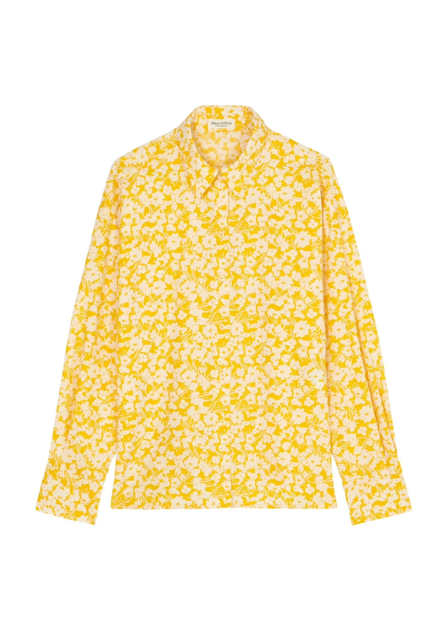 Marc O’Polo Long Sleeve Blouse In A Relaxed Fit With An All-over Print Made Of Paper Touch Poplin