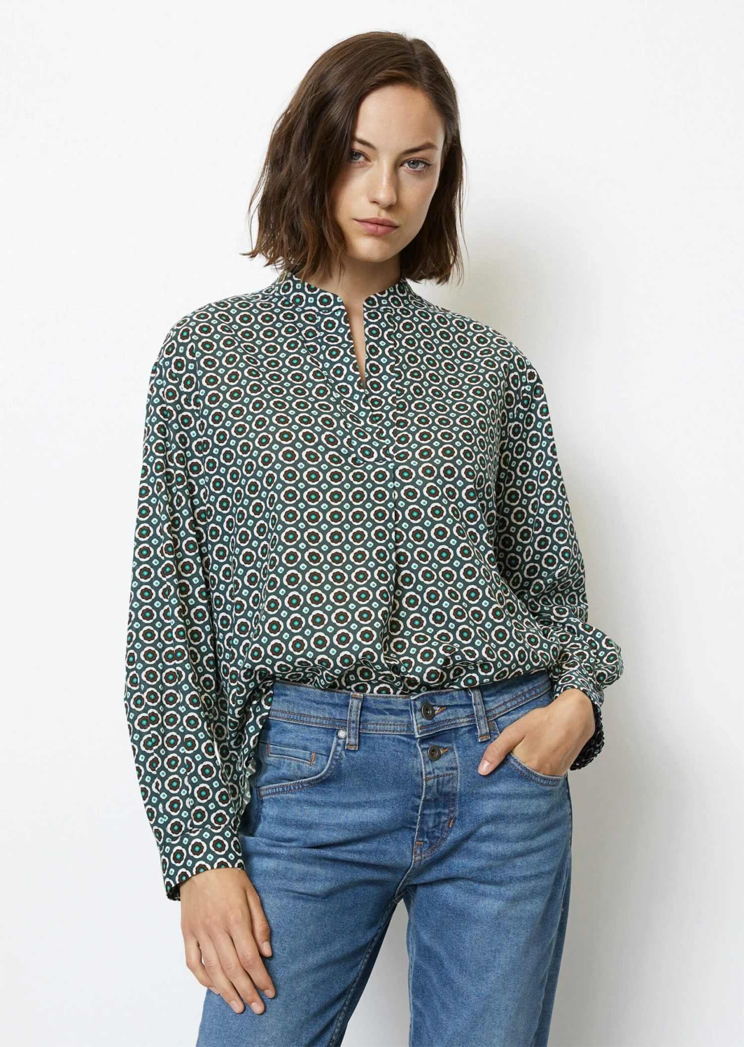Marc O’Polo Long Sleeve Blouse With An All-over Print, Regular Fit In Voile Fabric With A Silky Touch