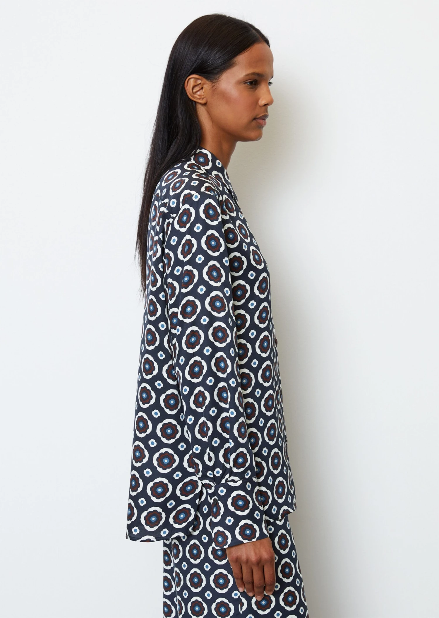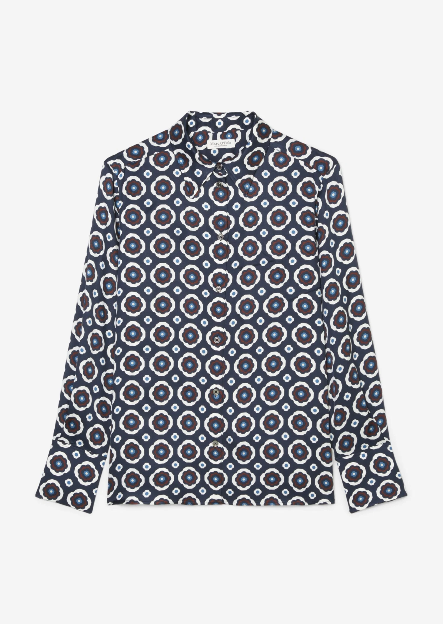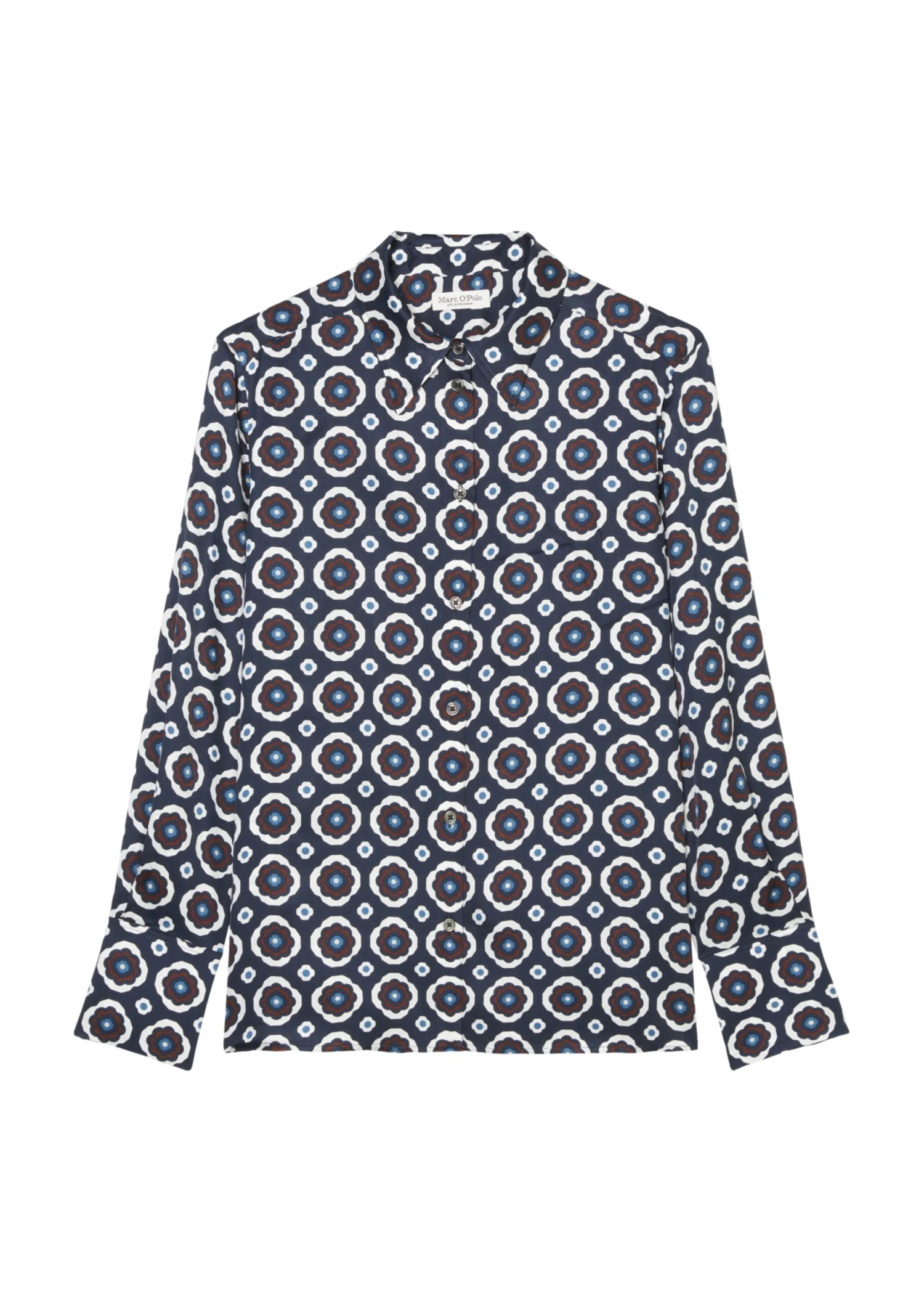 Marc O’Polo Long Sleeve Blouse In A Relaxed Fit With An All-over Print Made Of Paper Touch Poplin