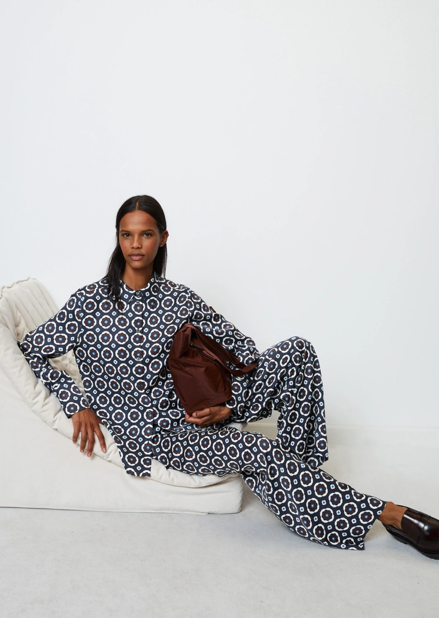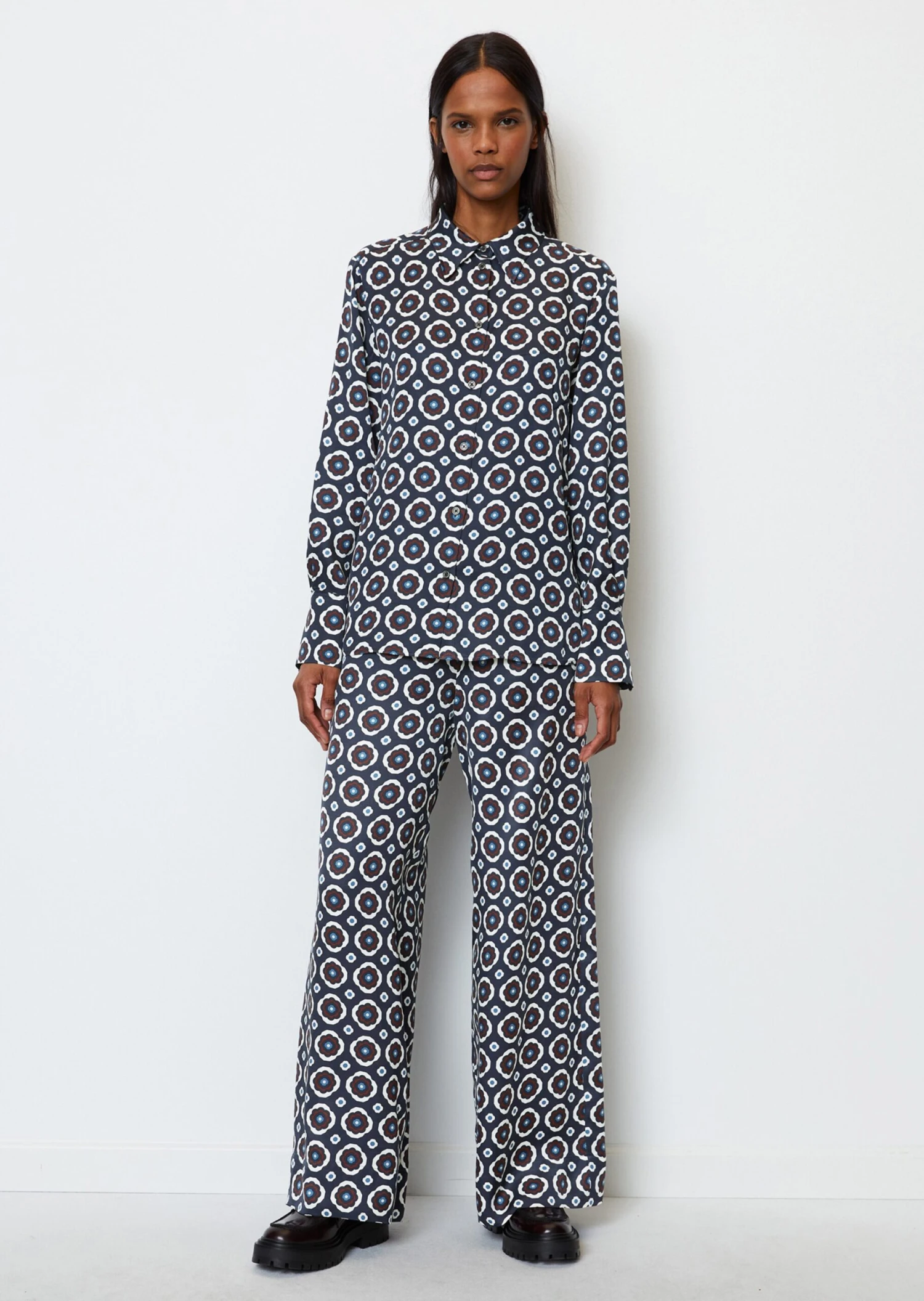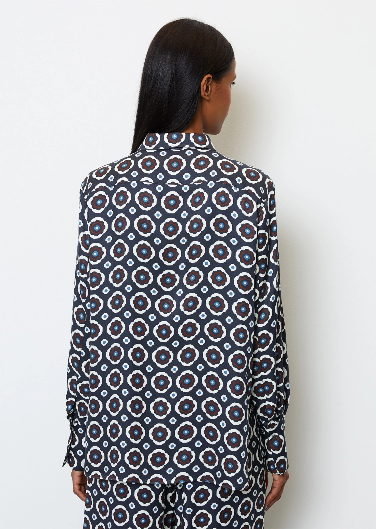 Marc O’Polo Long Sleeve Blouse In A Relaxed Fit With An All-over Print Made Of Paper Touch Poplin