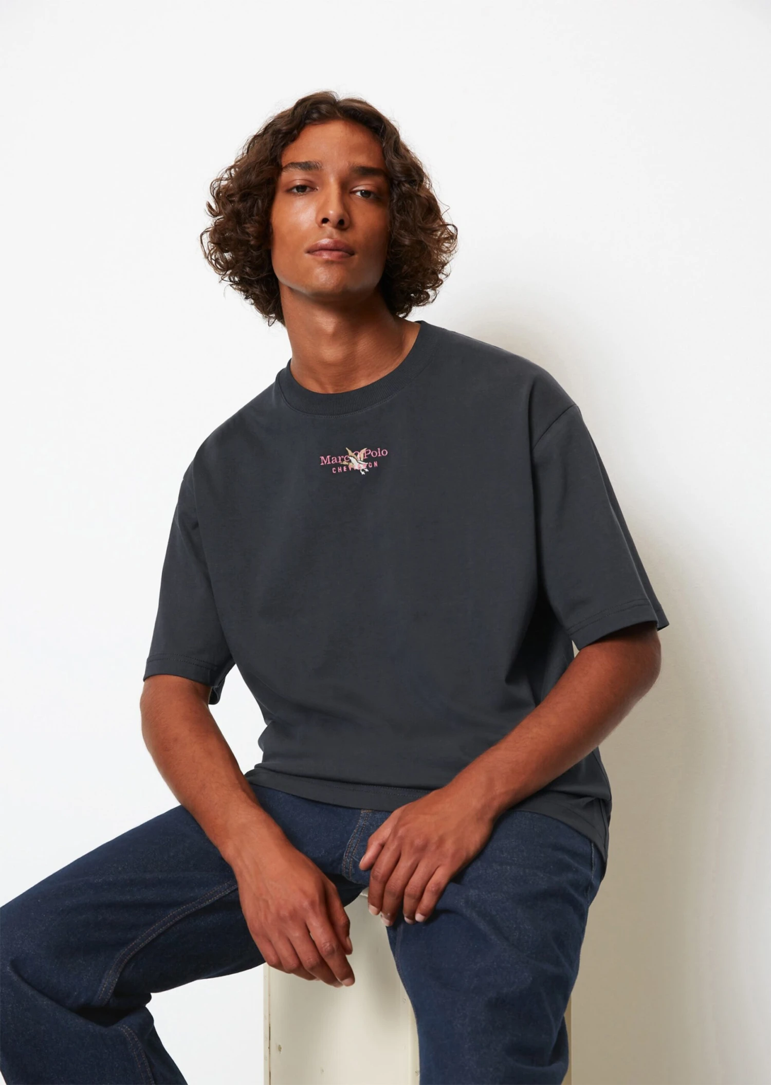 Marc O’Polo x CHEVIGNON. Iconic, limited, authentic: Nordic naturalness meets French free spirit! Casual T-shirt in relaxed fit with American shoulder finish, finely ribbed round neck, short sleeves and straight hem line. The quality: pure, GOTS-certified organic cotton in a pleasantly heavy jersey quality. An innovative logo embroidery of the collab partners is centered on the chest. Perfect in combination with a cool denim shorts and sporty sneakers.