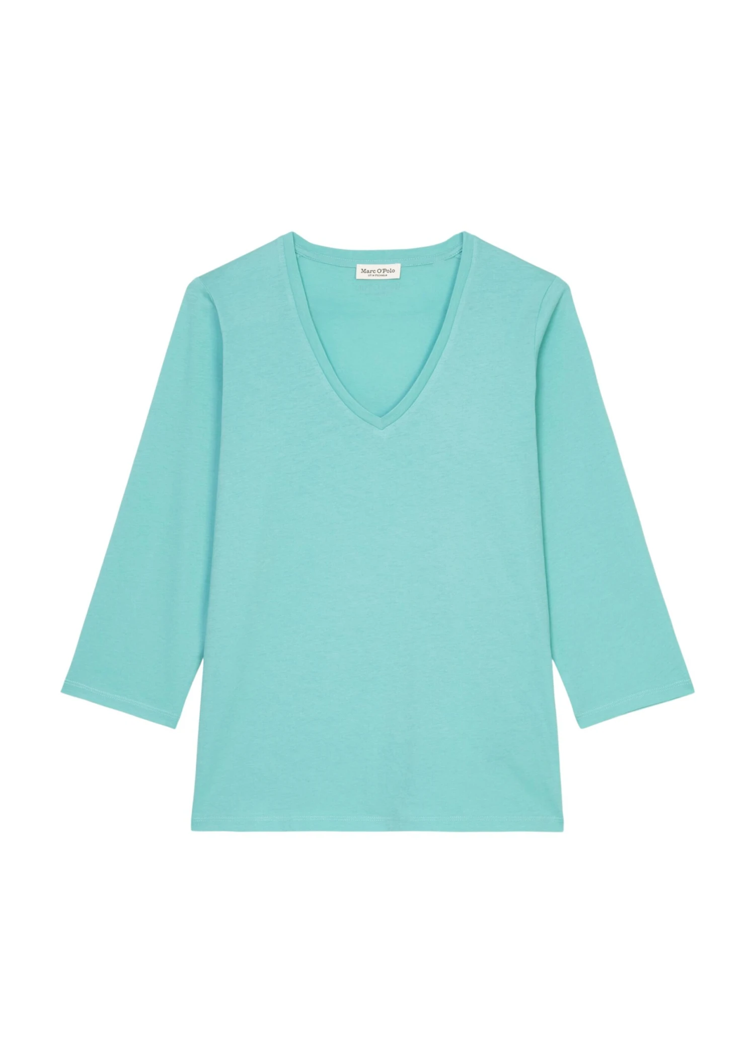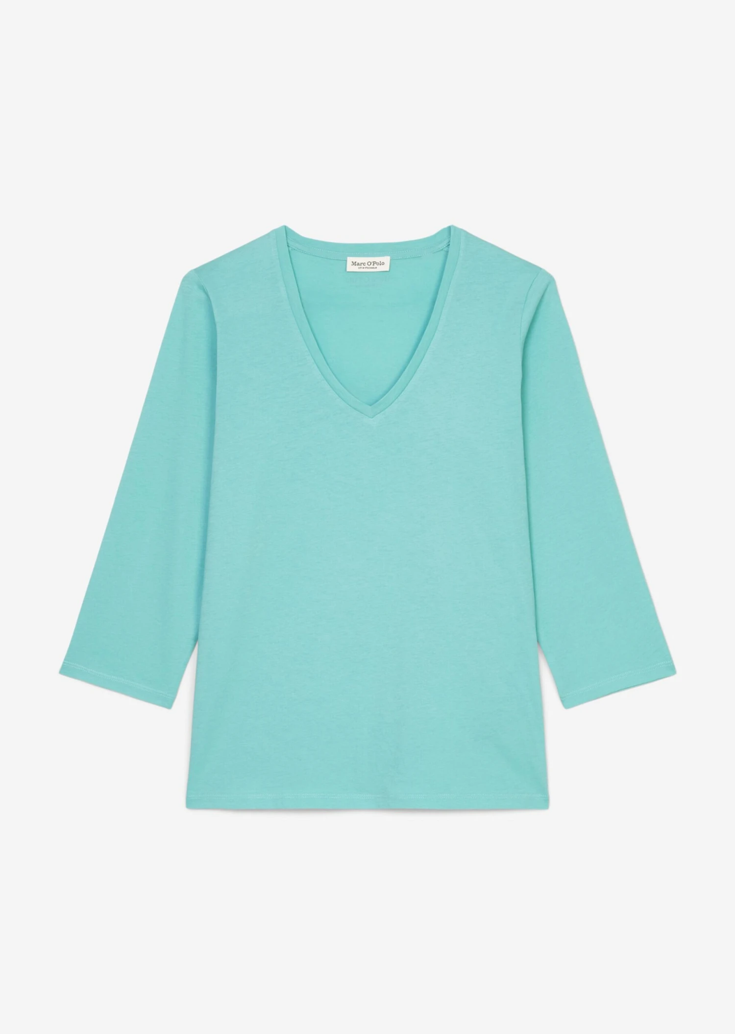 Wearing wide T-shirts was trendier than ever last summer. And the “big” trend is set to continue this spring and summer. This V-neck design comes in a loose fit with dropped shoulders, 3/4-length sleeves, side seams that are offset to the front and a classic straight hemline. The fabric is soft, fine and garment-washed single jersey made of certified organic cotton.