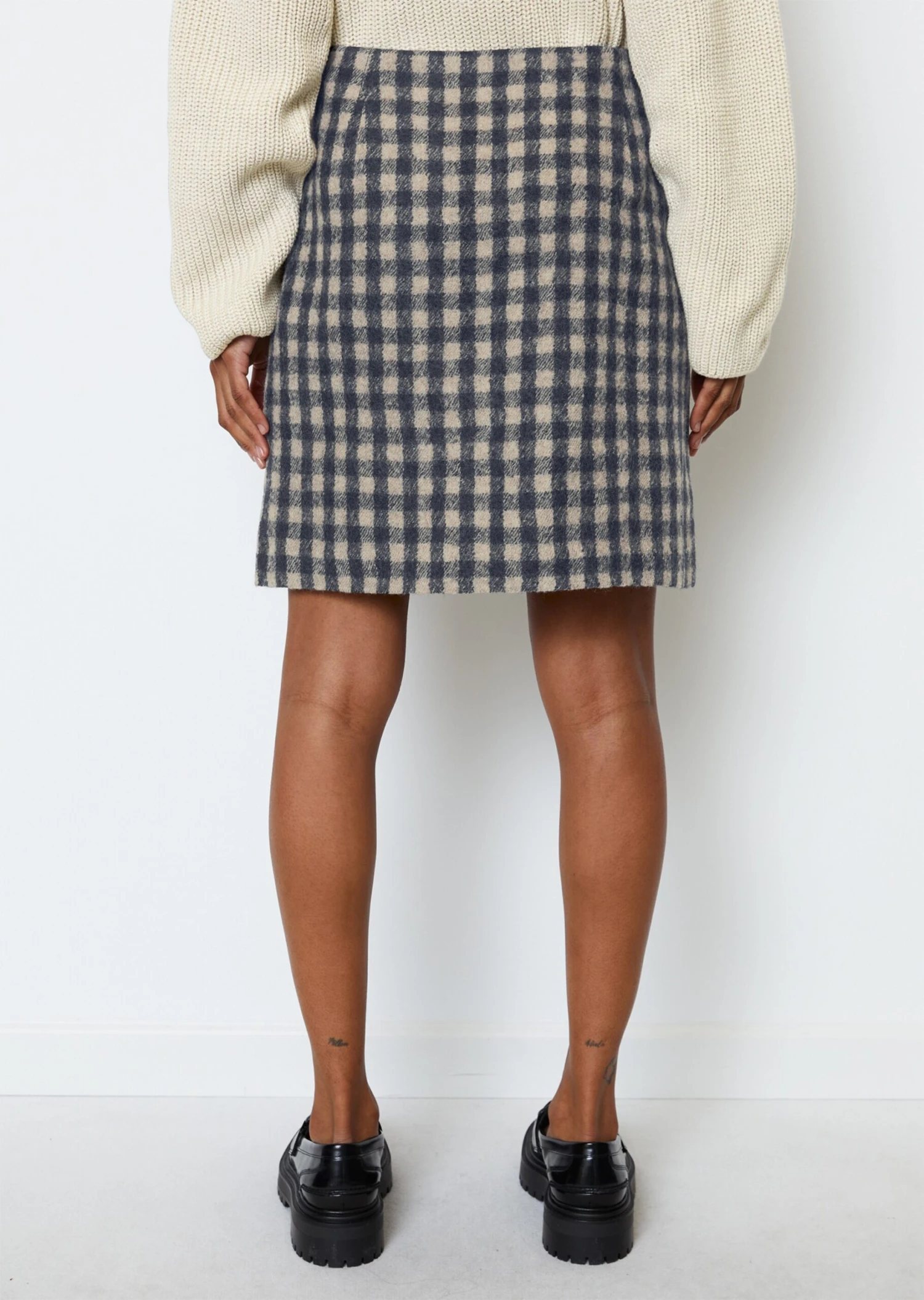 A season without a checked pattern is unthinkable! This time, the superstar among designs is shown on a short, flared skirt made of pure virgin wool. The mini skirt has a fitted waistband with a seamless side zip and is fully lined. Current favourite styling look: combine with the matching checked overshirt.