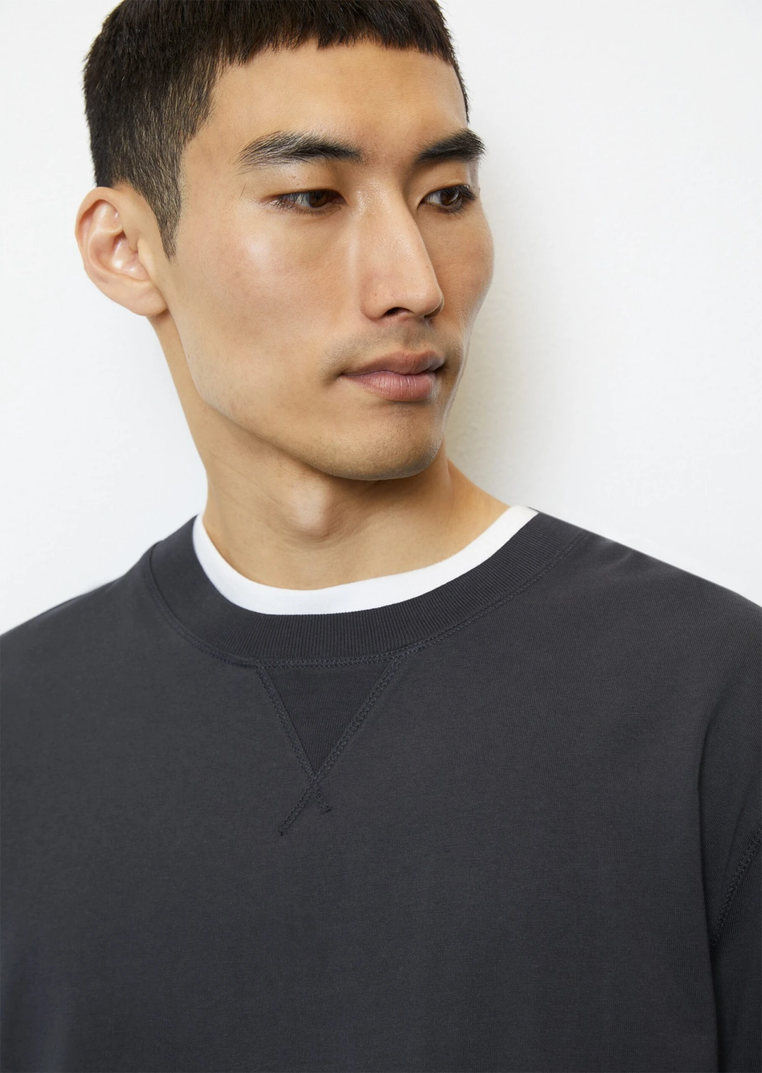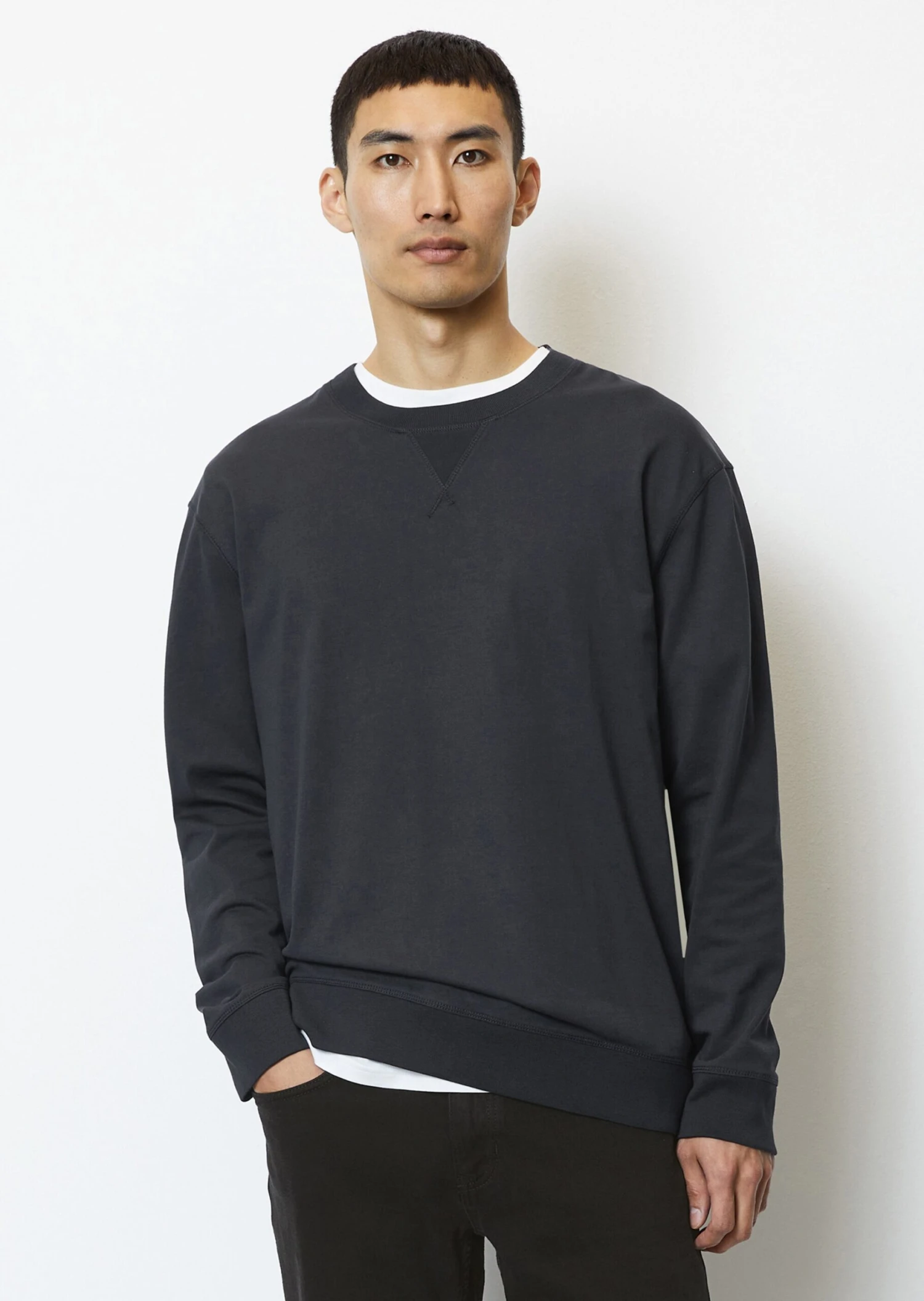 Made of particularly comfortable heavy jersey: the sweatshirt-style longsleeve falls loosely in a relaxed fit with slightly overcut shoulders. Made of pure GOTS-certified organic cotton in heavy quality, it features typical details: the ribbed round neckline with triangle underneath and the compact cuffs and straight hem.