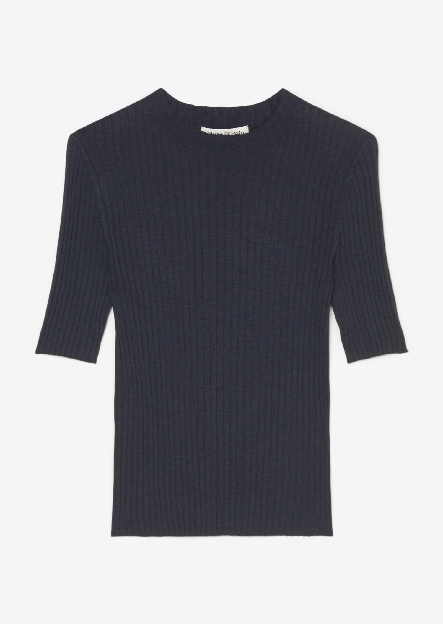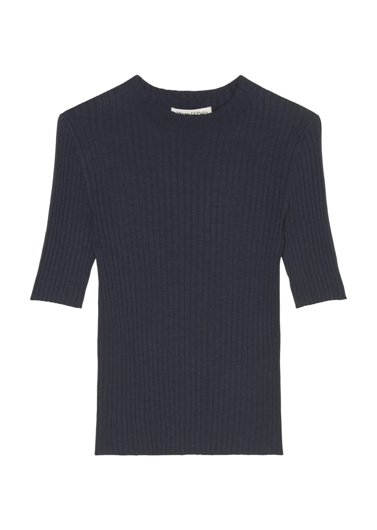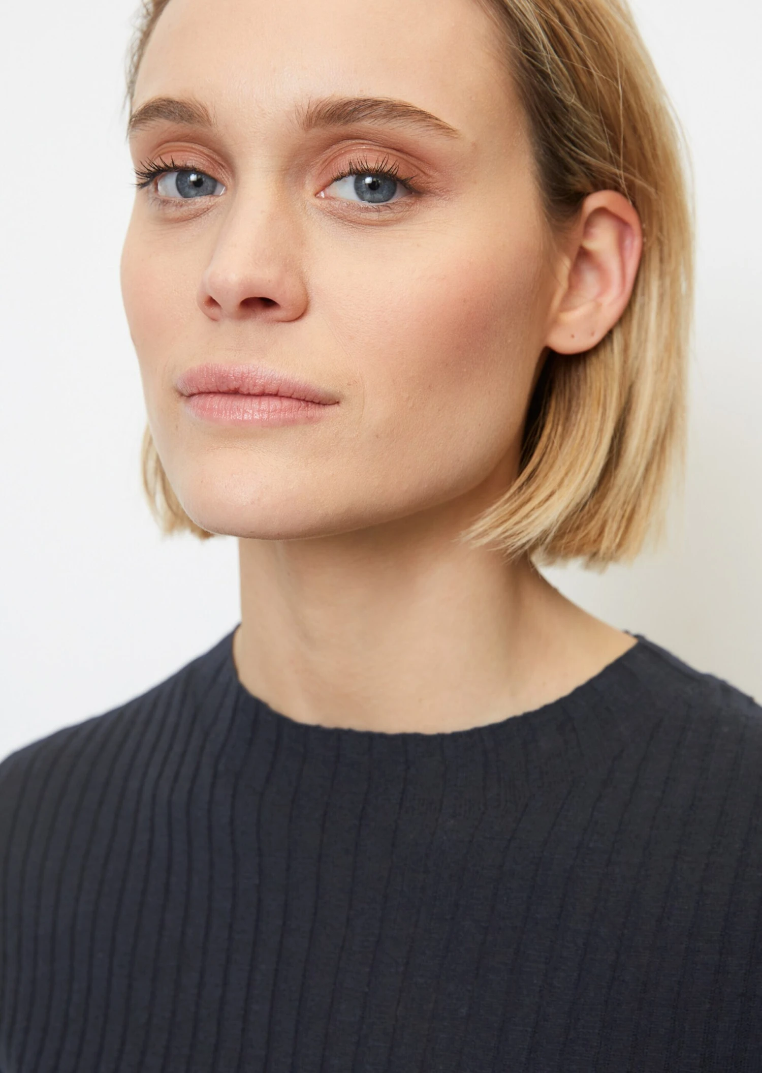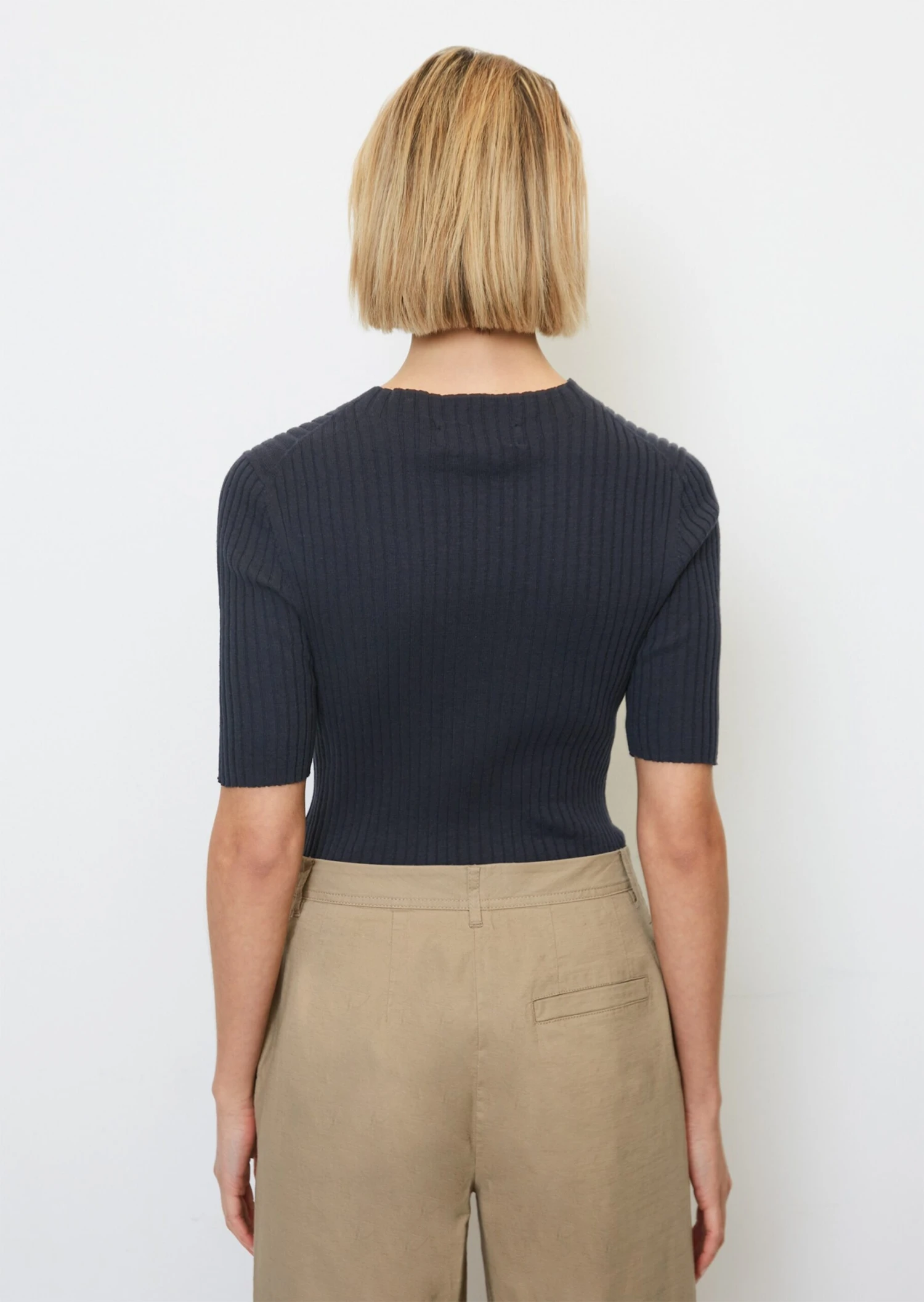 Marc O’Polo Short Sleeve Rib Knit Jumper Made Of Cotton/linen Slub Yarn