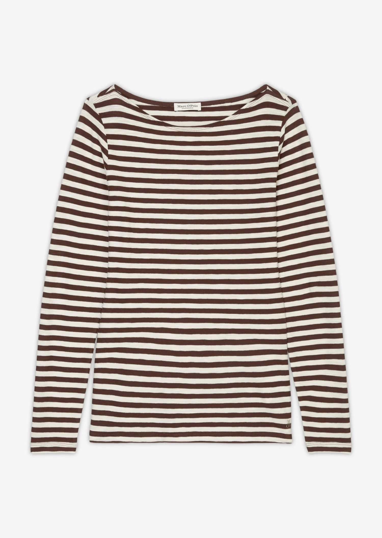 A fashion classic with a long tradition in the style of a French Breton top – this super casual, striped long sleeve top is made of soft, pure organic cotton slub jersey fabric. The laid-back all-rounder comes with a bateau neckline and a subtle logo print at the hem. The texture is soft, loose and grainy all at the same time. The fit: regular, feminine, comfortable. This high-quality, sustainable garment made of organically cultivated cotton is an expression of our commitment to the environment. It’s a simple basic that offers a host of mix and match options while providing that carefree Parisienne feeling.