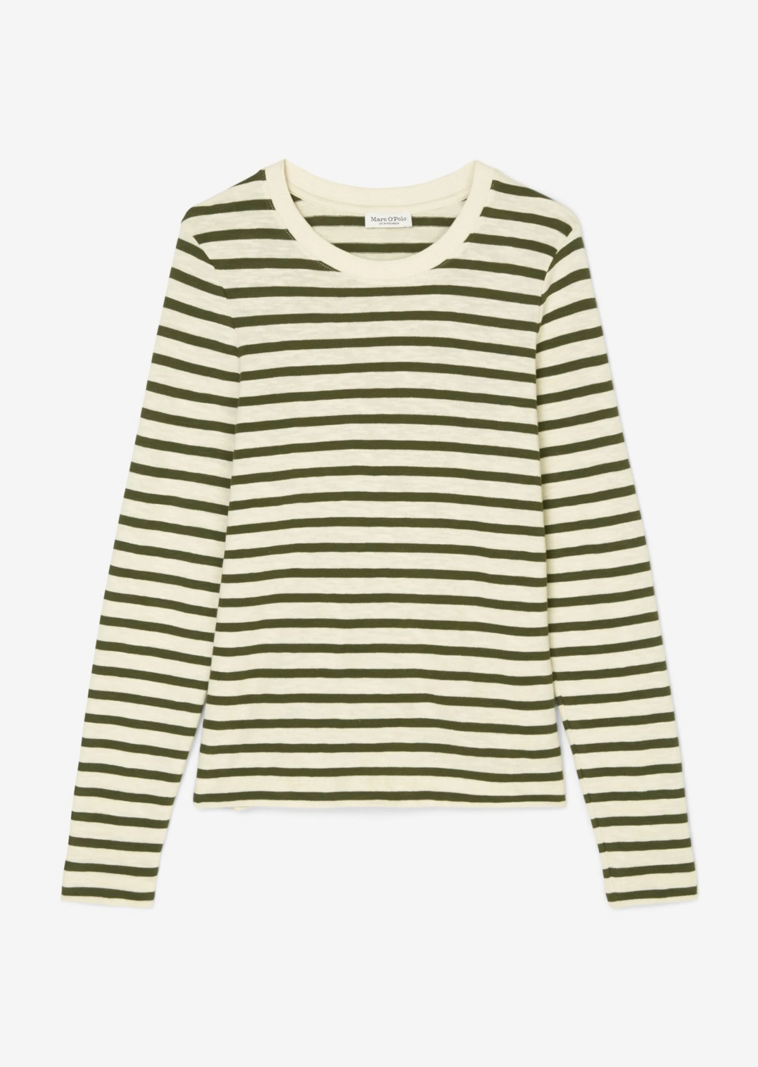 This striped long sleeve top with a classic, finely ribbed round neckline and straight hem is the perfect alternative to a sweatshirt and is a best-seller that will never go out of fashion. This long sleeve top is made of pure, certified organic cotton in casual medium-weight slub jersey fabric. The stripes are not printed but yarn-dyed. The soft brushed reverse promises exceptional comfort. It comes in a characteristic regular, comfy fit.