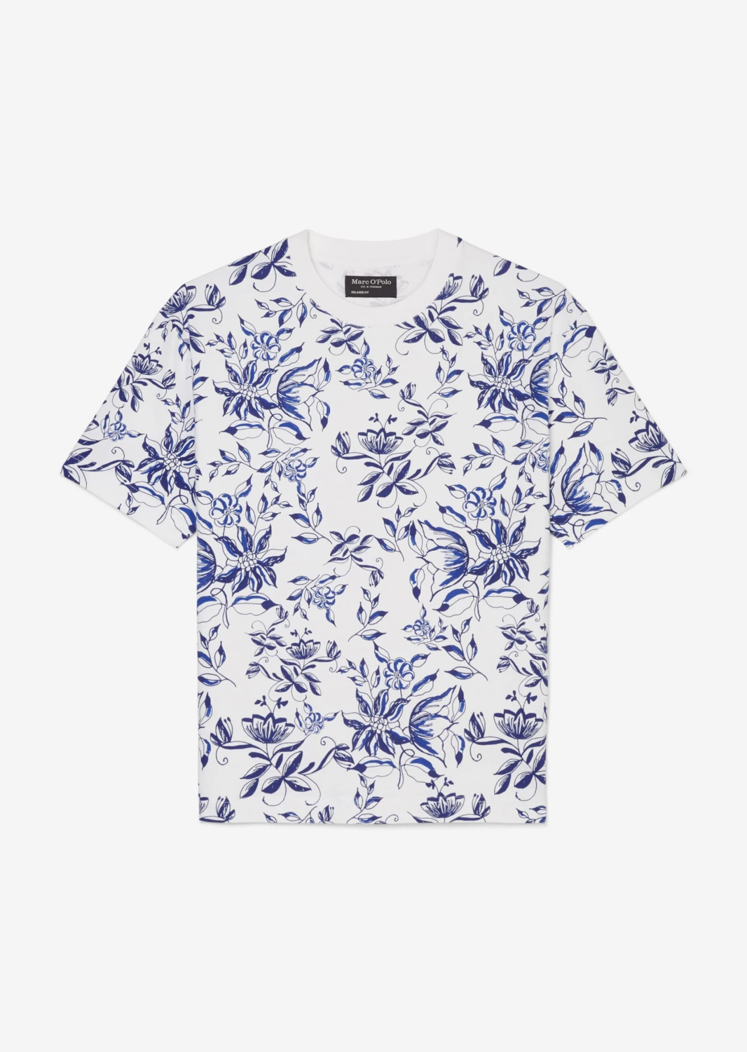 With a summery, floral, all-over print: this casual T-shirt sparks joy in the day-to-day. In a loose relaxed fit with a ribbed round neckline in a solid colour, slightly dropped shoulders, short sleeves and a straight hemline. It comes in medium-weight jersey fabric made of pure, GOTS-certified organic cotton for exceptional comfort.