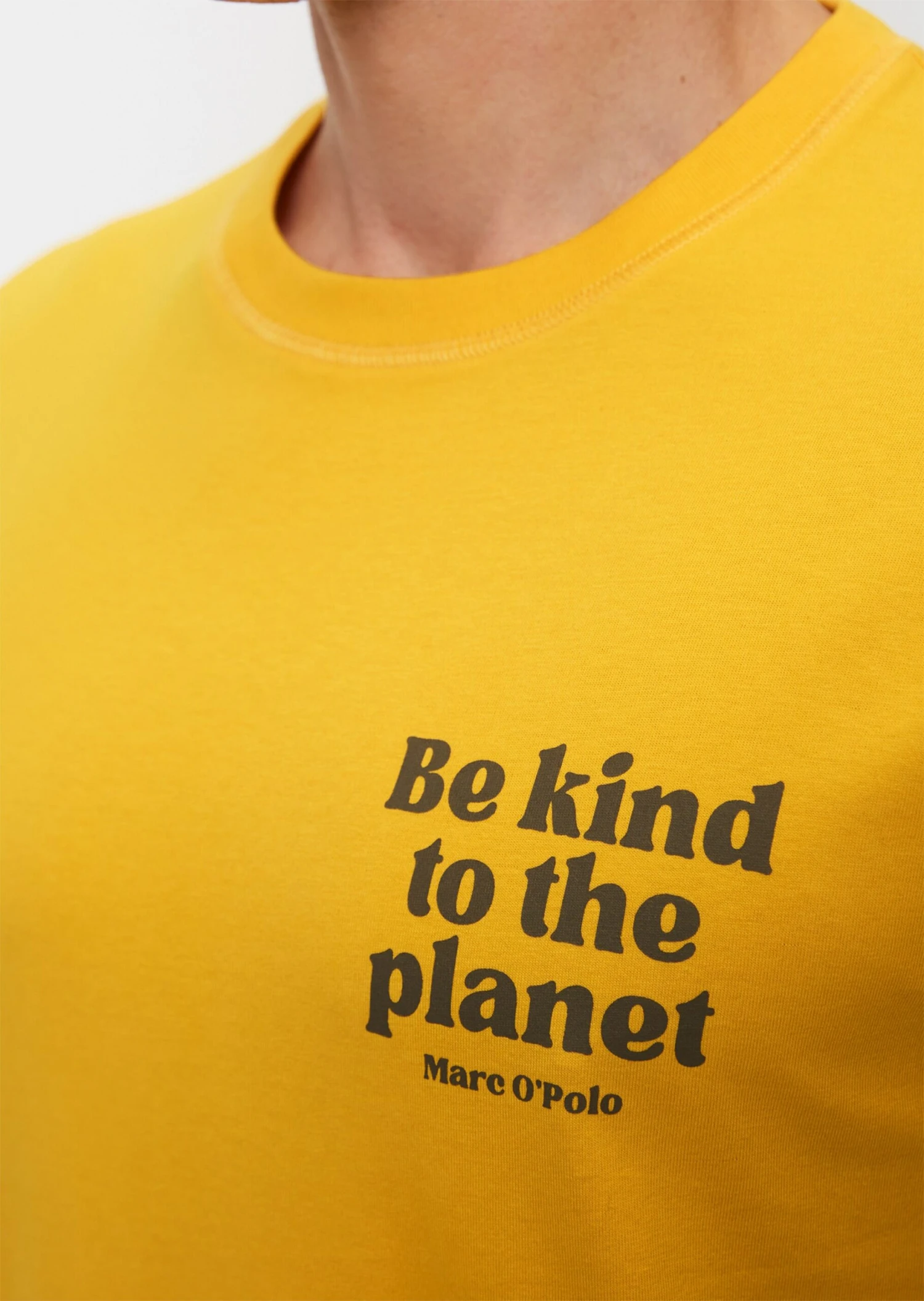 T-shirts are a wardrobe staple. This high-quality piece comes in organic single jersey fabric composed of soft, GOTS-certified organic cotton. In a masculine regular fit with a round neckline, short sleeves and a straight hemline. There is distinctive logo lettering in a contrasting colour on the chest featuring a small but important statement.