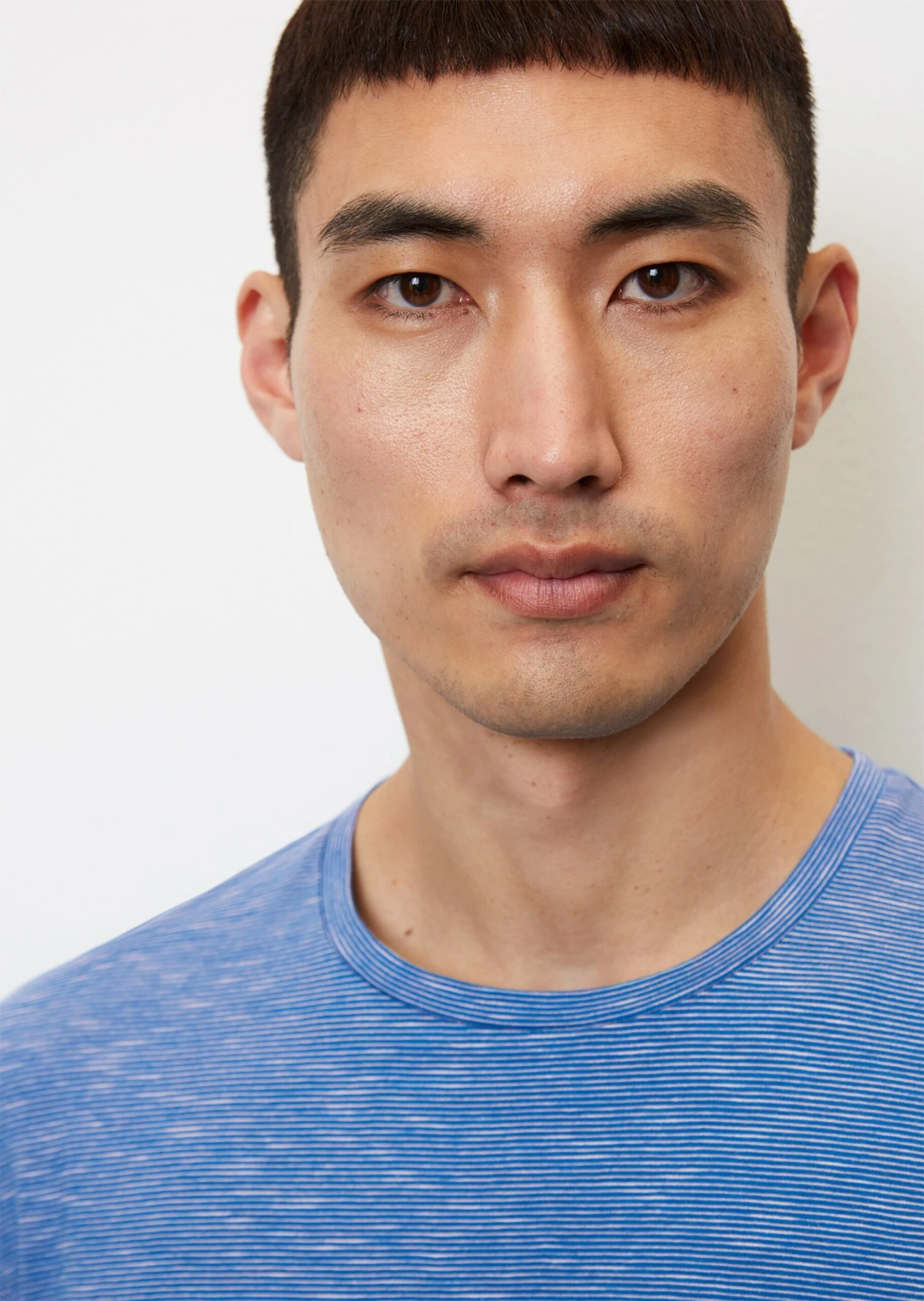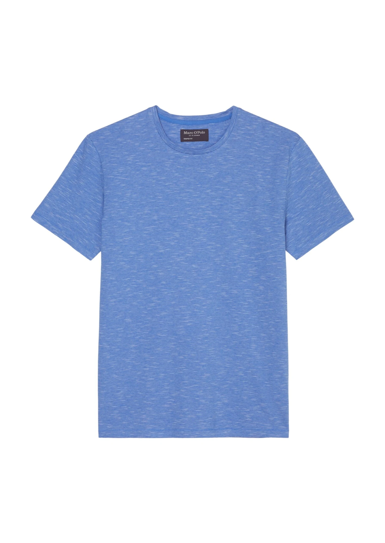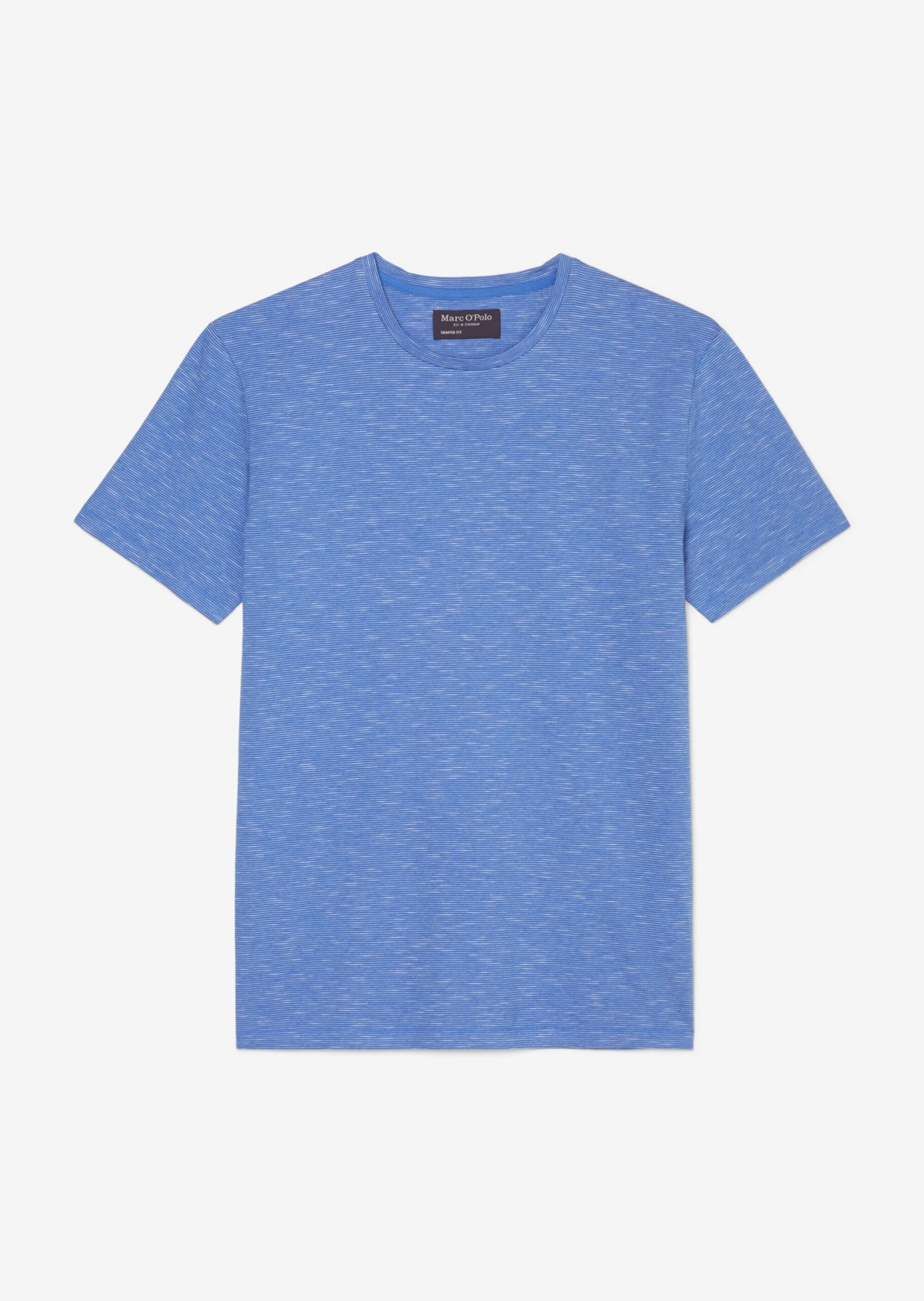 The piece comes in a masculine, shaped fit for a modern look. It is made of pure, GOTS-certified organic cotton and is very comfortable to wear thanks to its single jersey fabric. It features a fine yarn-dyed striped pattern, a classic ribbed round neckline, short sleeves and a straight hemline. A logo label is attached to the side seam.