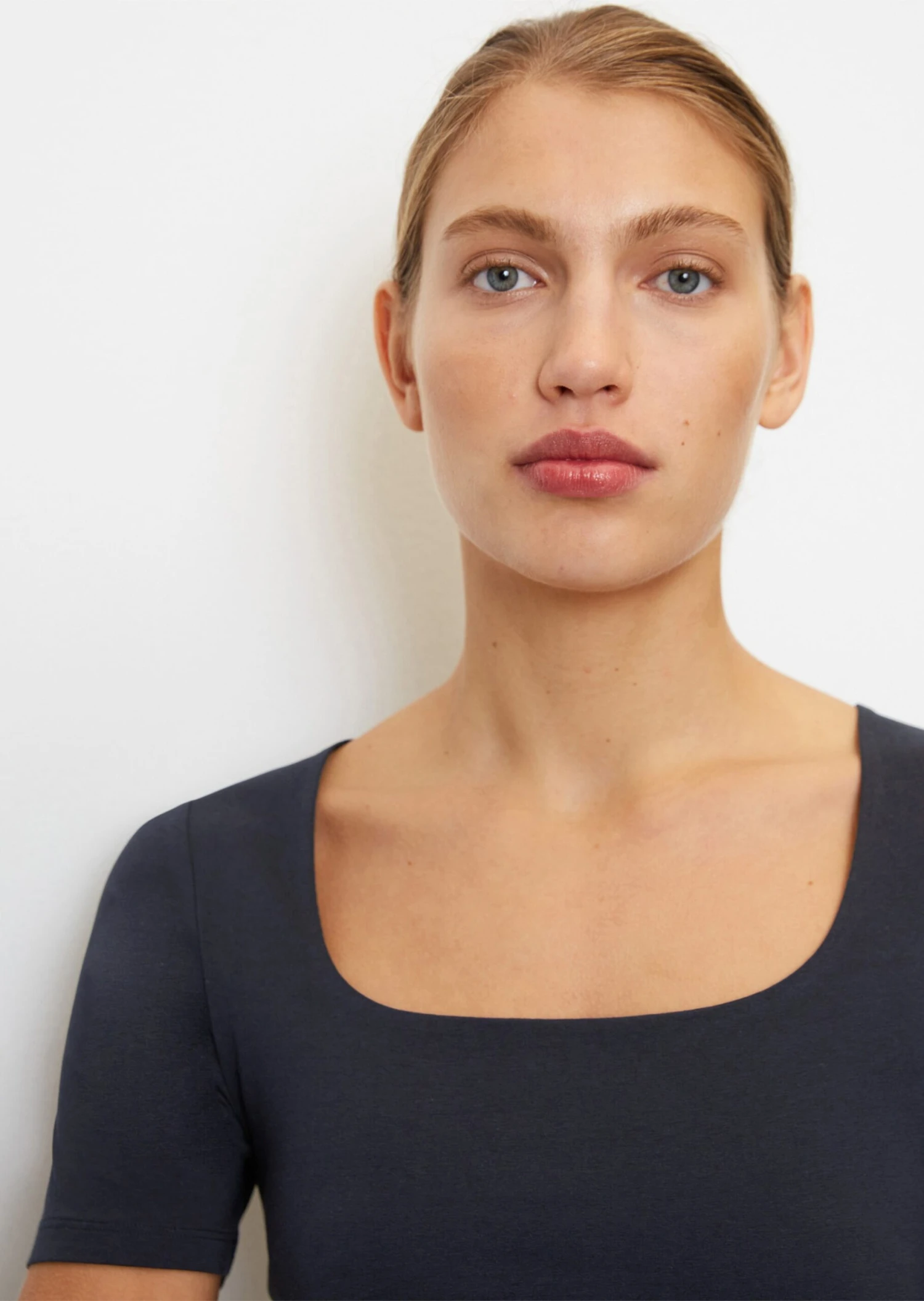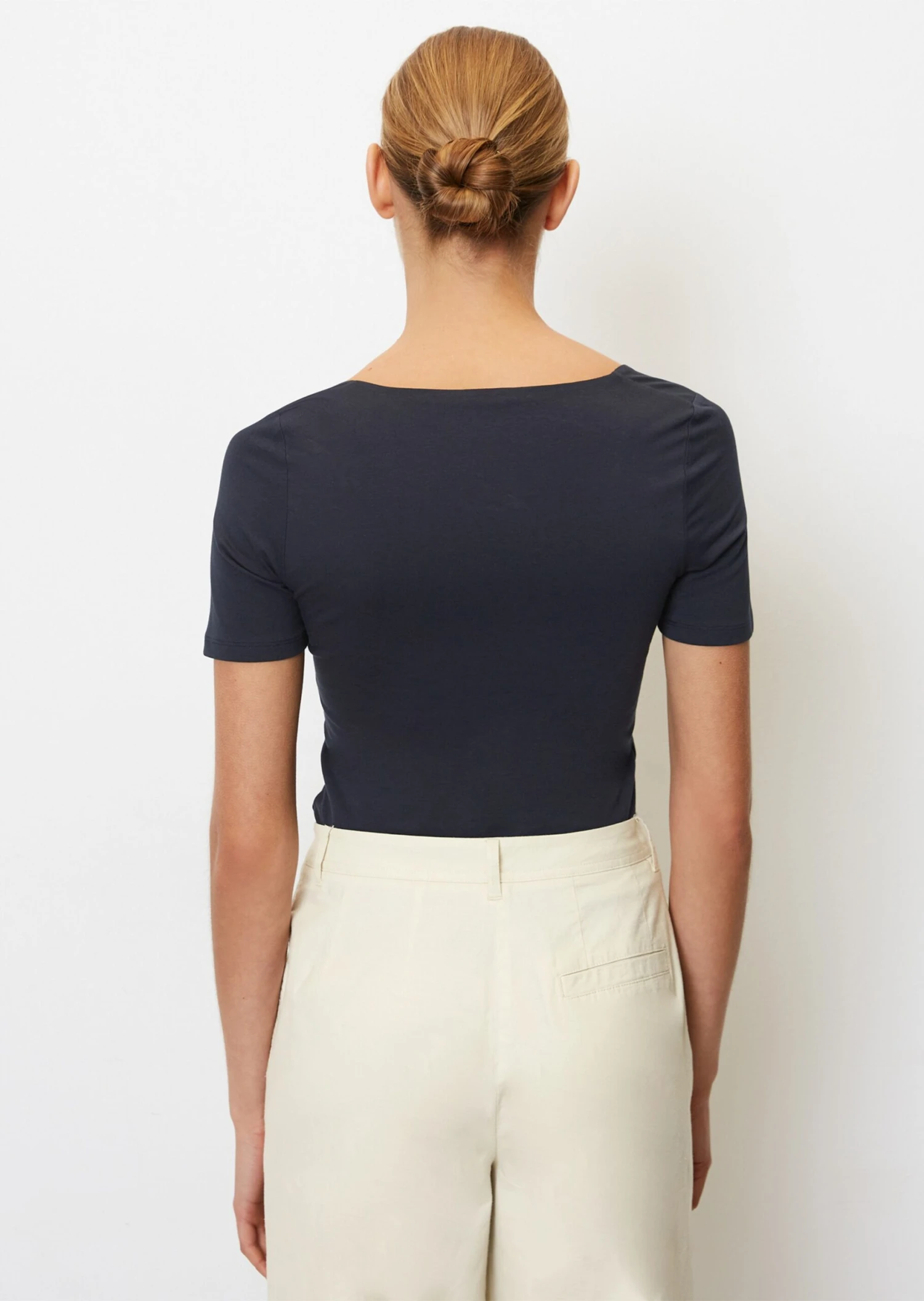 The angular square neckline adds a special touch to this T-shirt, giving it an ultra-modern look. It will add a unique twist to any look and guarantees an eye-catching look. This well-fitting piece is made of soft, comfortable stretch jersey made from a high-quality organic cotton blend. It comes with classic short sleeves and a straight hem.