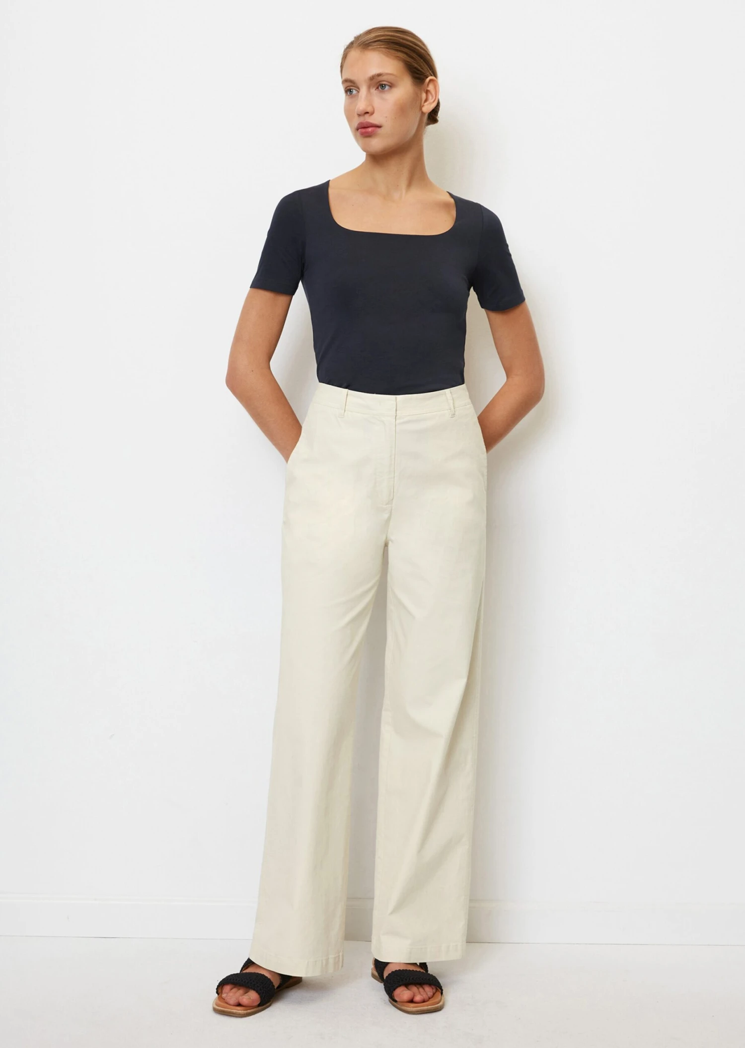 Marc O’Polo T-shirt With A Square Neckline Made Of Stretch Single Jersey