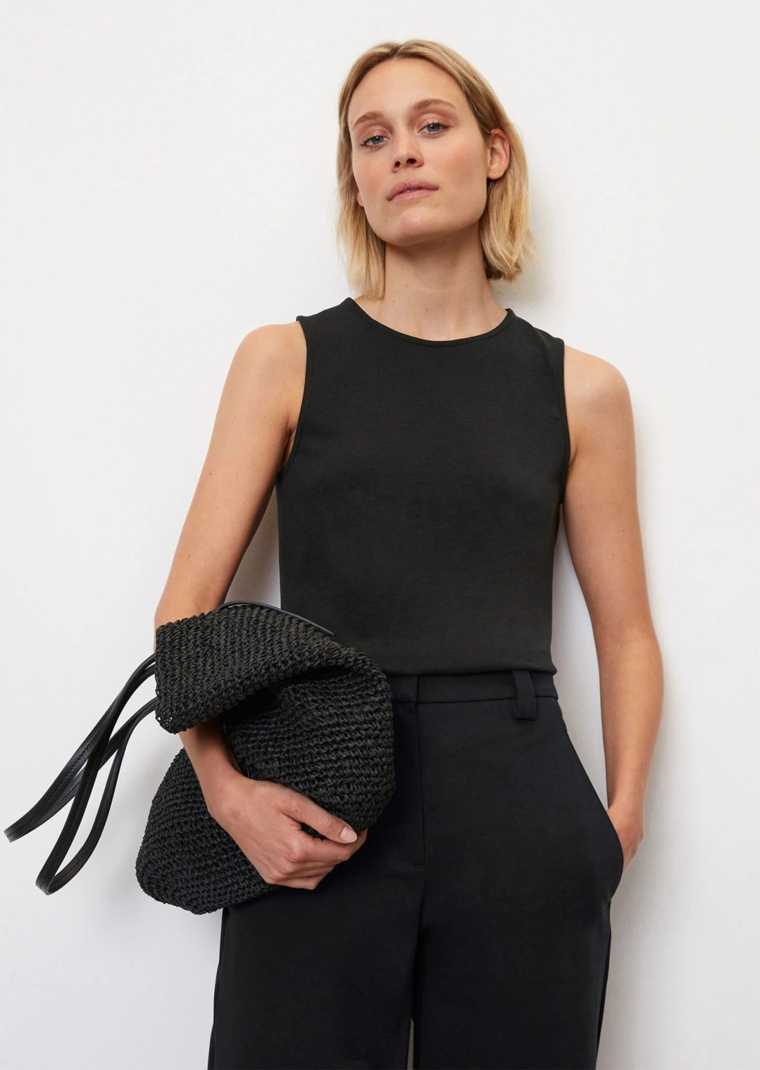 Style update: Tank tops are enjoying a comeback! This casual top is made of finely ribbed jersey composed of a lyocell and organic cotton blend with added elastane and is wonderfully lightweight. It comes in a sleeveless design with a deep round neckline and a straight hemline. This top will soon be your new favourite. It’s incredibly versatile and lends itself to any look. Strong as a base layer, self-assured as a solo piece.